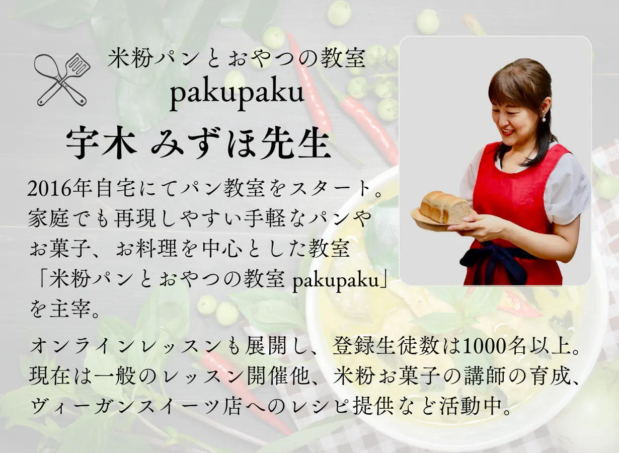 手軽なパンやお菓子、お料理を中心として日本全国に生徒様を抱える人気教室「米粉パンとおやつの教室pakupaku」の宇木みずほ先生には、「WOKYHahapan2.0」で野菜がたくさん入った発酵キーマカレーを作っていただき、「料理が楽しくなるフライパンですね!」と高評価をいただきました。