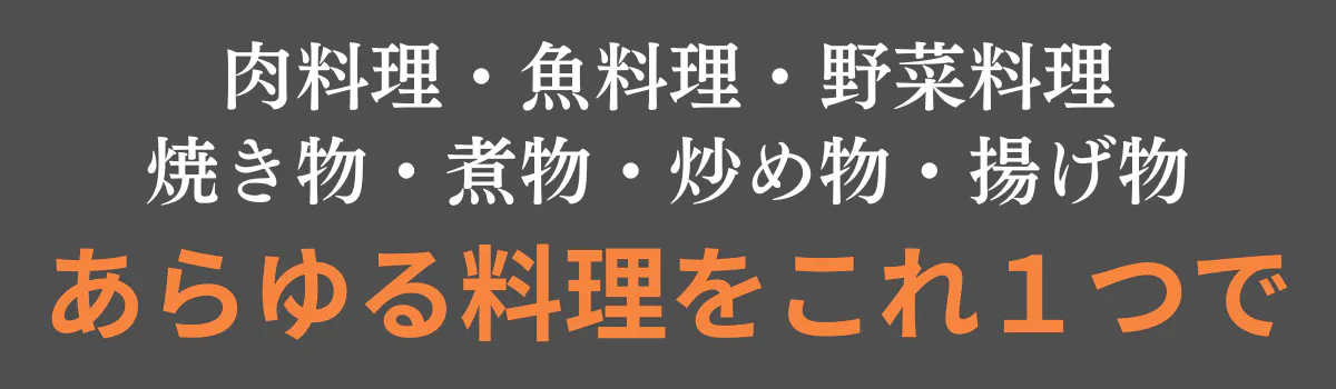 熱源に応じて焼き物、煮物、炒め物、揚げ物様々な料理をお楽しみください。