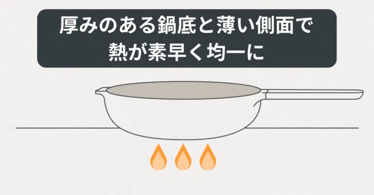 素早く均一に熱が伝わることで食材の旨味を引き出し、より一層美味しい料理に仕上がります。
