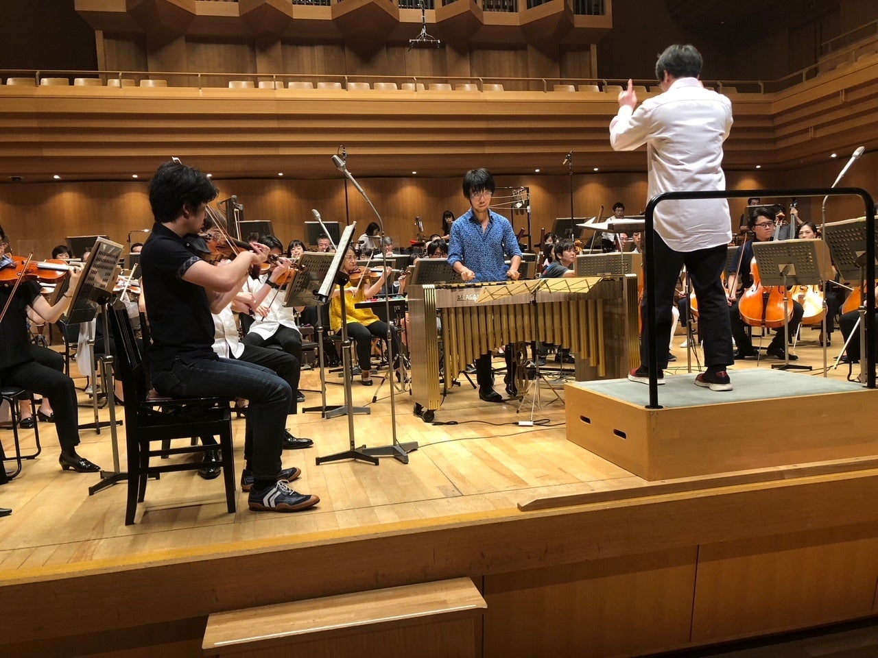 2018/09/06 21:15お陰をもちまして、オーケストラ・プロジェクト2018は昨日、無事に終了いたしました。 多くのお客様にご来場頂き、大井剛史さんの明快な指揮による東京交響楽団の素晴らしい演奏、独奏者の西村翔太郎さん、會田瑞樹さんの熱演で会場はおおいに盛り上がりました。 クラウドファンディングでご支援下さった皆さまには改めて感謝申し上げます。本当にありがとうございました! ゲネプロの様子 演奏会終了後の打ち上げにて 左から指揮者の大井剛史さん、ヴィブラフォン独奏の會田瑞樹さん、出品作曲家の山内雅弘さん 同じく演奏会終了後の打ち上げにて 今回の独奏者、會田瑞樹さんと西村翔太郎さん もっと見る