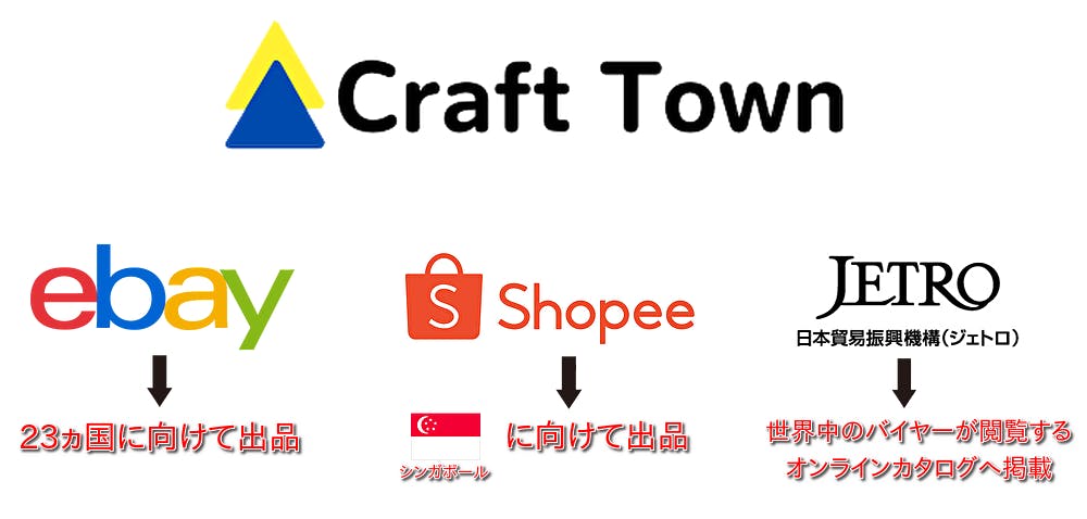そこで、CraftTownは上記全ての悩みを解決し、「英語不要」「海外発送不要」「英語での顧客対応不要」どんな方でも日本一手軽に・簡単に海外に向けて出品出来るサービスを提供しております。