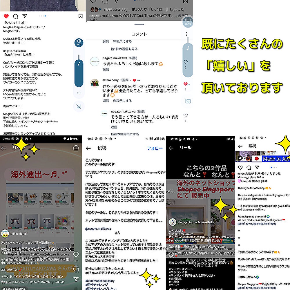 現在、既にアジア最大級のショッピングサイトShopeeSingaporeへ30名以上の作家様の作品を100品以上出品し売上も少しずつ上がってきており、更に世界最大級の通販サイトebayにて23ヵ国に向けても同時に出品しており、いつでも販売促進となる広告を出せる状況です。
