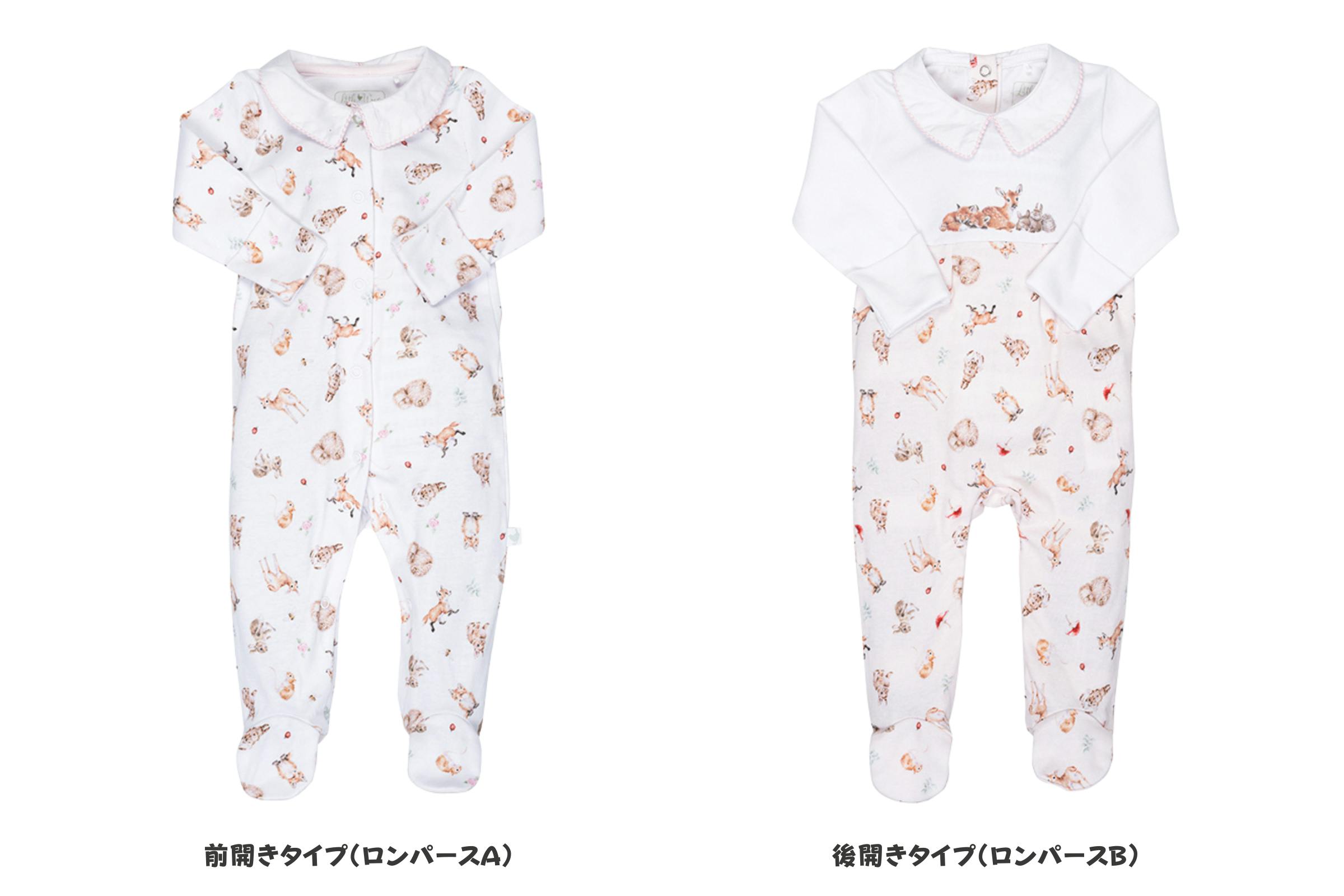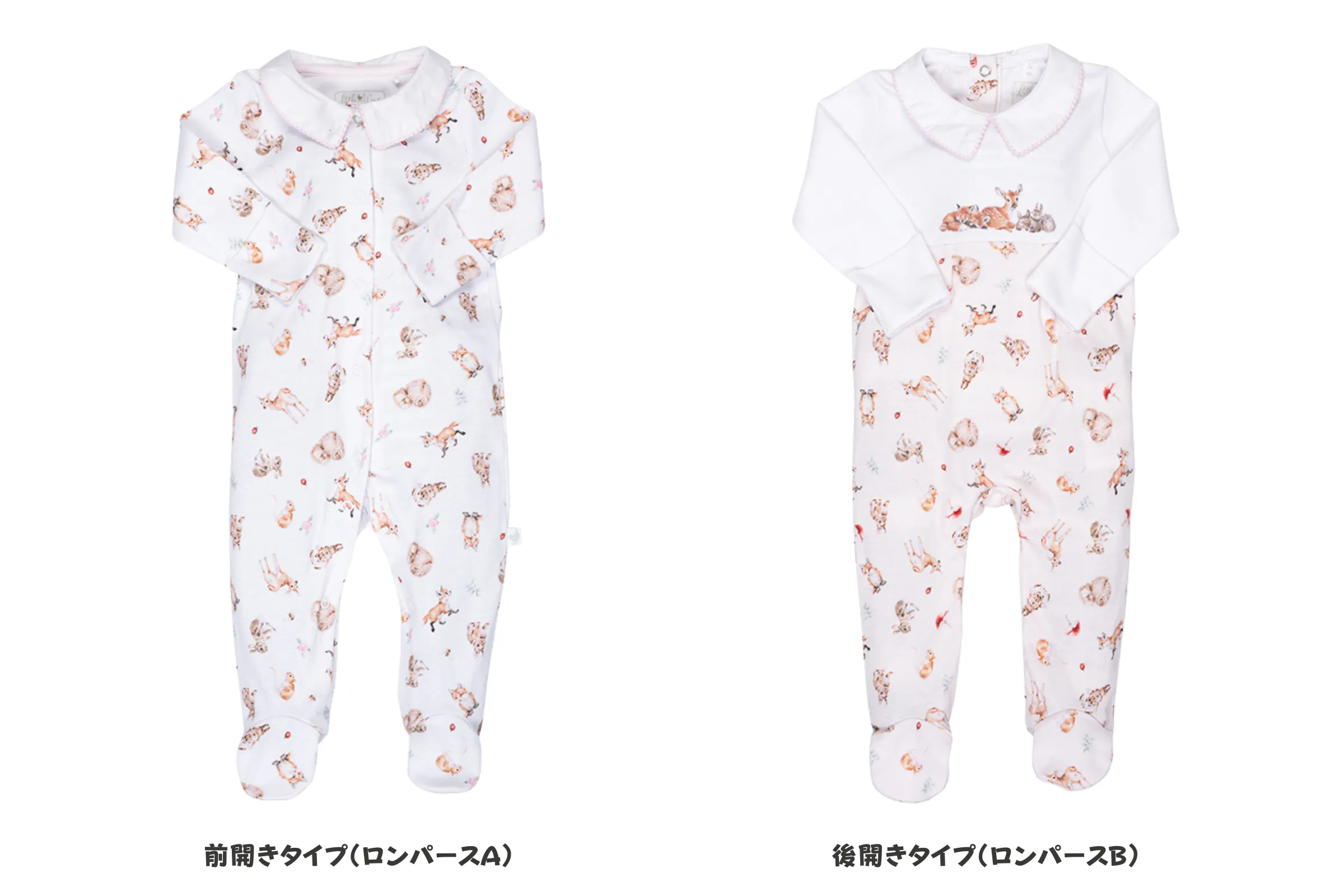 今回のクラウドファンディングでは、お客様のお好みに合わせて「前開きタイプ」と「後開きタイプ」のロンパースをご用意しました。お好みのタイプをお選びいただけます。