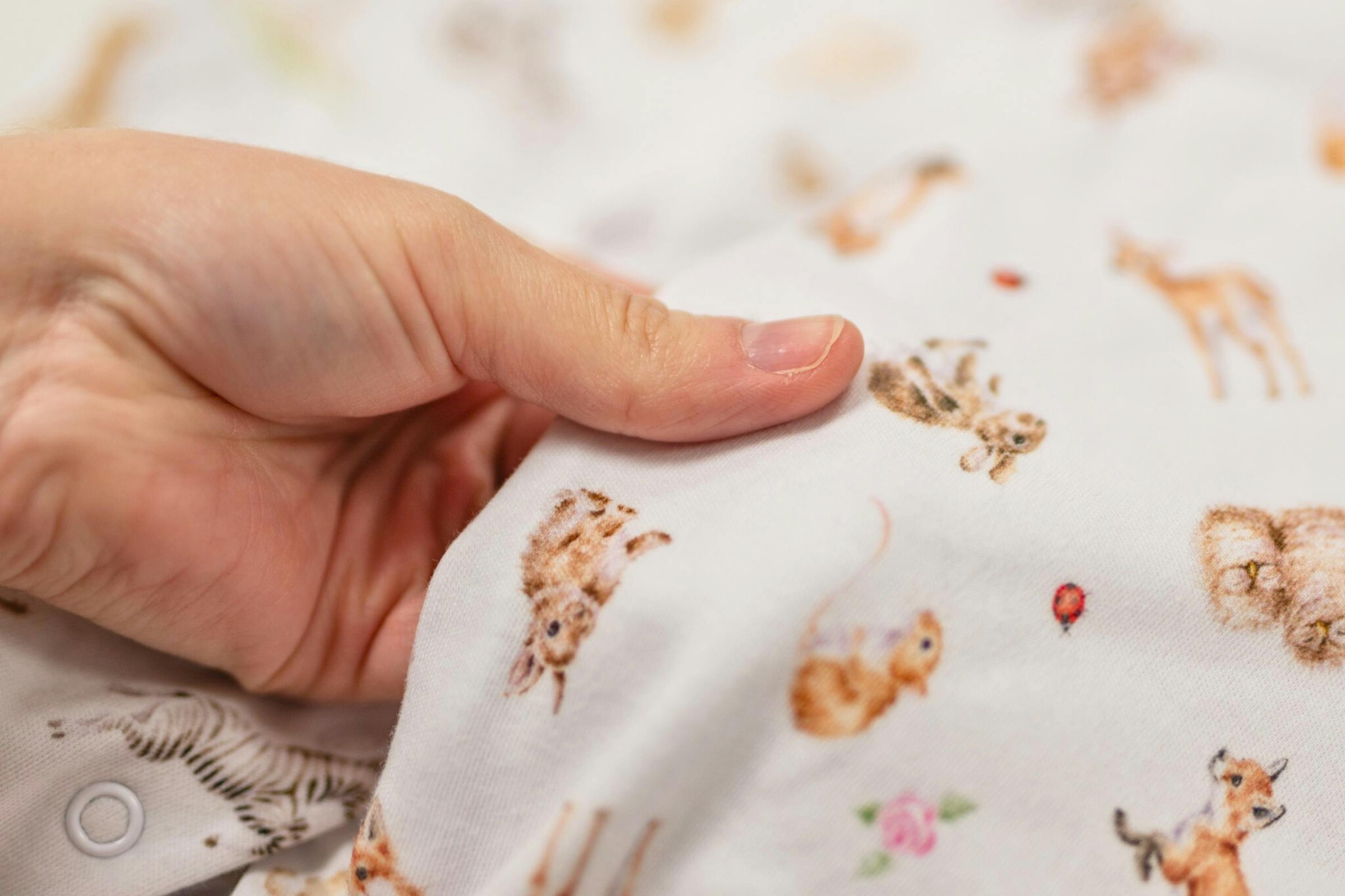 ベビー服やブランケットなど、直接肌に触れる商品では「100%コットン」を採用。有害物質を一切含まない高級素材を使用しているので、安心してお使いいただけます。