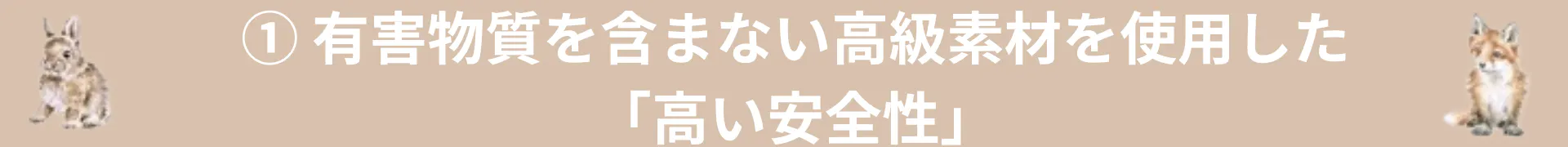 ① 有害物質を含まない高級素材を使用した「高い安全性」