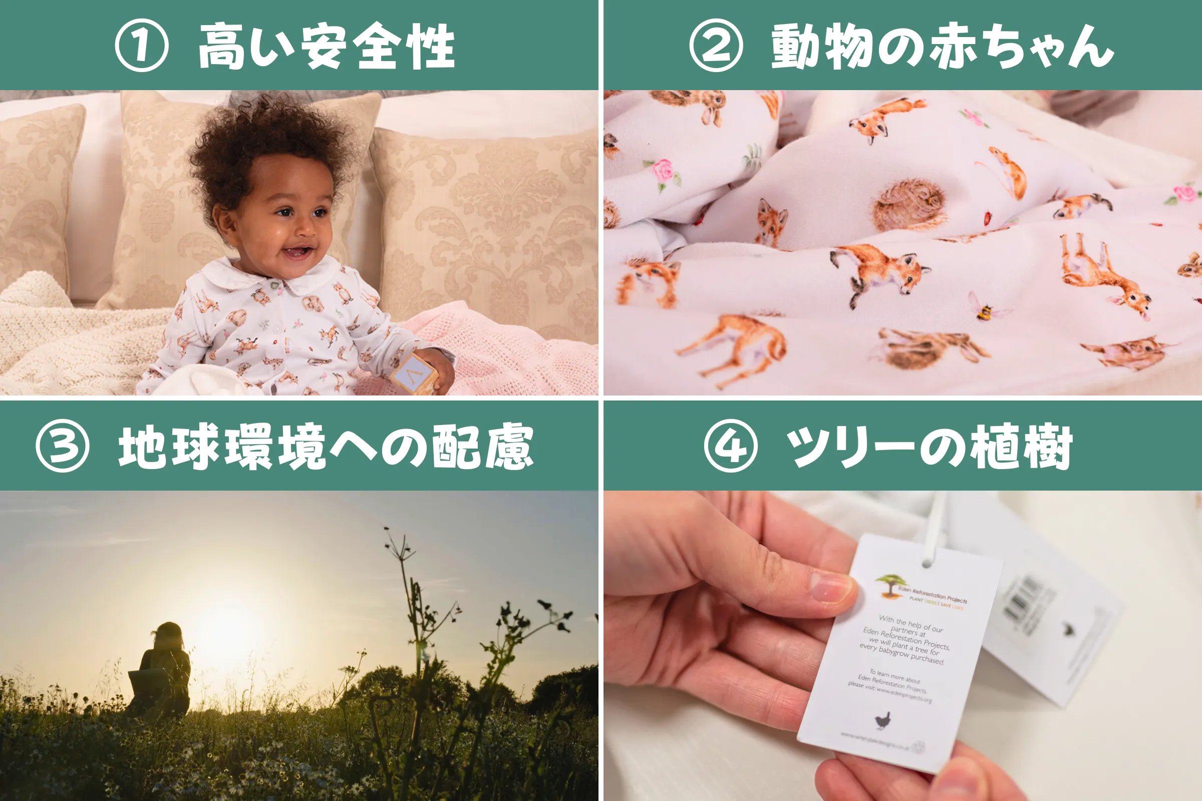 また、プレミアムベビー用品シリーズ『Little Wren』では、地球の環境保護への取り組みとして、エデン再植林プロジェクトとのパートナーシップを通じた【 木の植樹 】を実施しています。ロンパースが「1着」購入されるごとに「1本」の木が植樹されます。