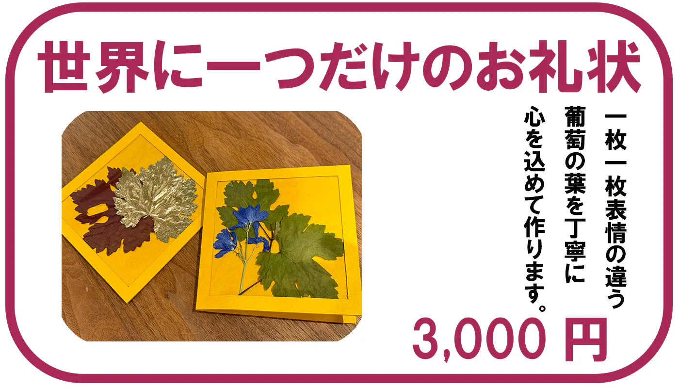 ◇自園ブドウの葉を使ったオリジナルお礼状◇