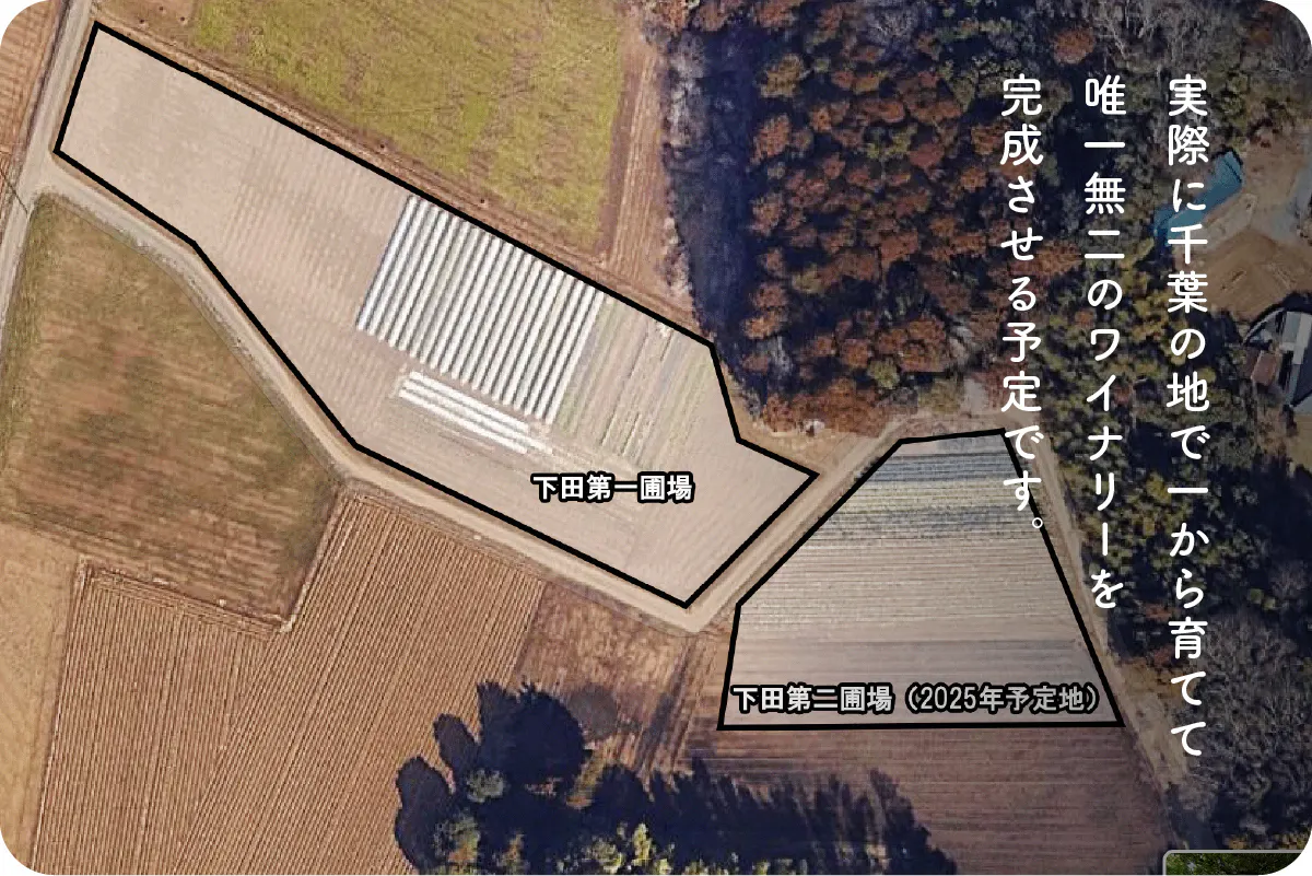 私たちも、この豊かな土地で葡萄を栽培し、地域のコミュニティや雇用を生み出すことで、千葉の未来に貢献したいと考えています。そして、その葡萄から生まれるワインが千葉の食文化と共に成熟し、人から人へと紡がれていく未来を描いています。