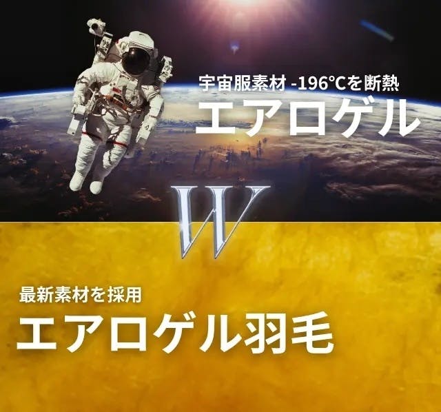 宇宙服素材に使用されているエアロゲル × 保温性抜群のエアロゲル羽毛を採用