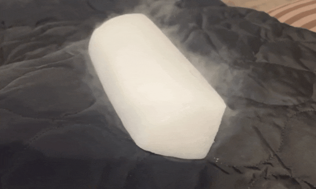 サイエンスを味方にした「WARM BLANKET」断熱性の高さを実際に確かめるため布団上に-78.5℃のドライアイスを置いて検証しました。