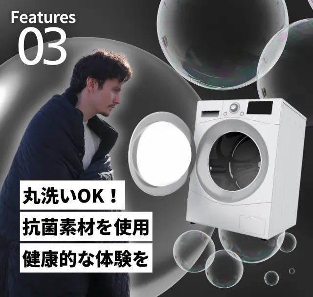 WARM BLANKETはご家庭の洗濯機で洗濯することができオールシーズン清潔な状態を保つことができます!100回洗浄・乾燥した後の熱伝導率は0.0181 W/(m・k)です。※初期熱伝導率は0.0182 W/(m・k)