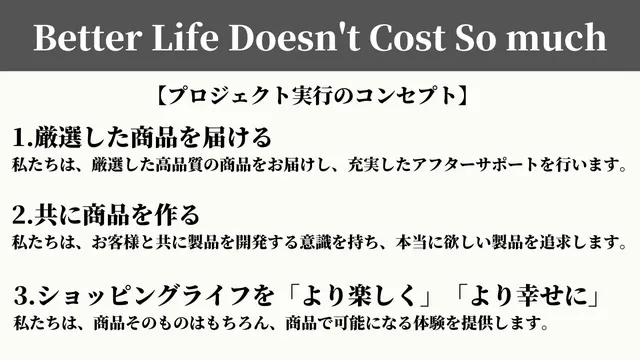 本クラウドファンディングで集まった支援金の使い道を、今後の広告宣伝費に使わせていただきます。今後も素晴らしい製品を皆様に提供できるように、チーム一同で努めてまいりますので、応援の程をよろしくお願いいたします。