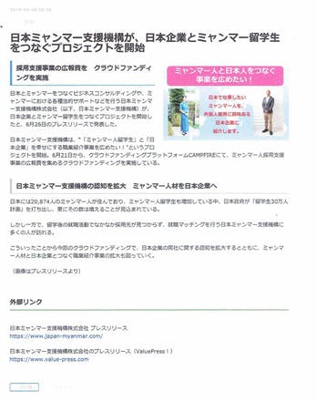 2018/06/29 14:57 ネットメディア「ミャンマーニュース」にこのプロジェクトが紹介されました! 掲載された様子はコチラのリンクからご覧いただけます! みなさま、応援よろしくお願い申し上げます。 #外国人採用 #技能実習生 #職業紹介 もっと見る