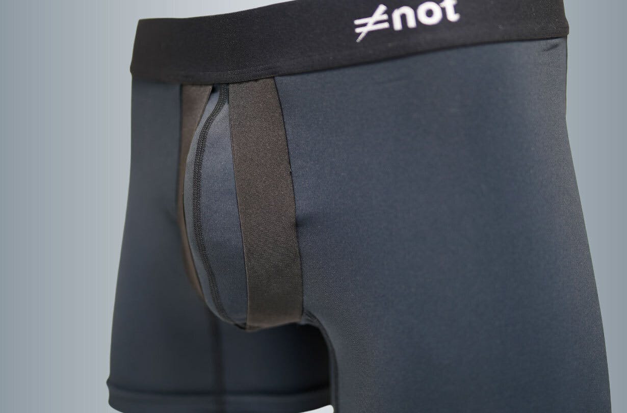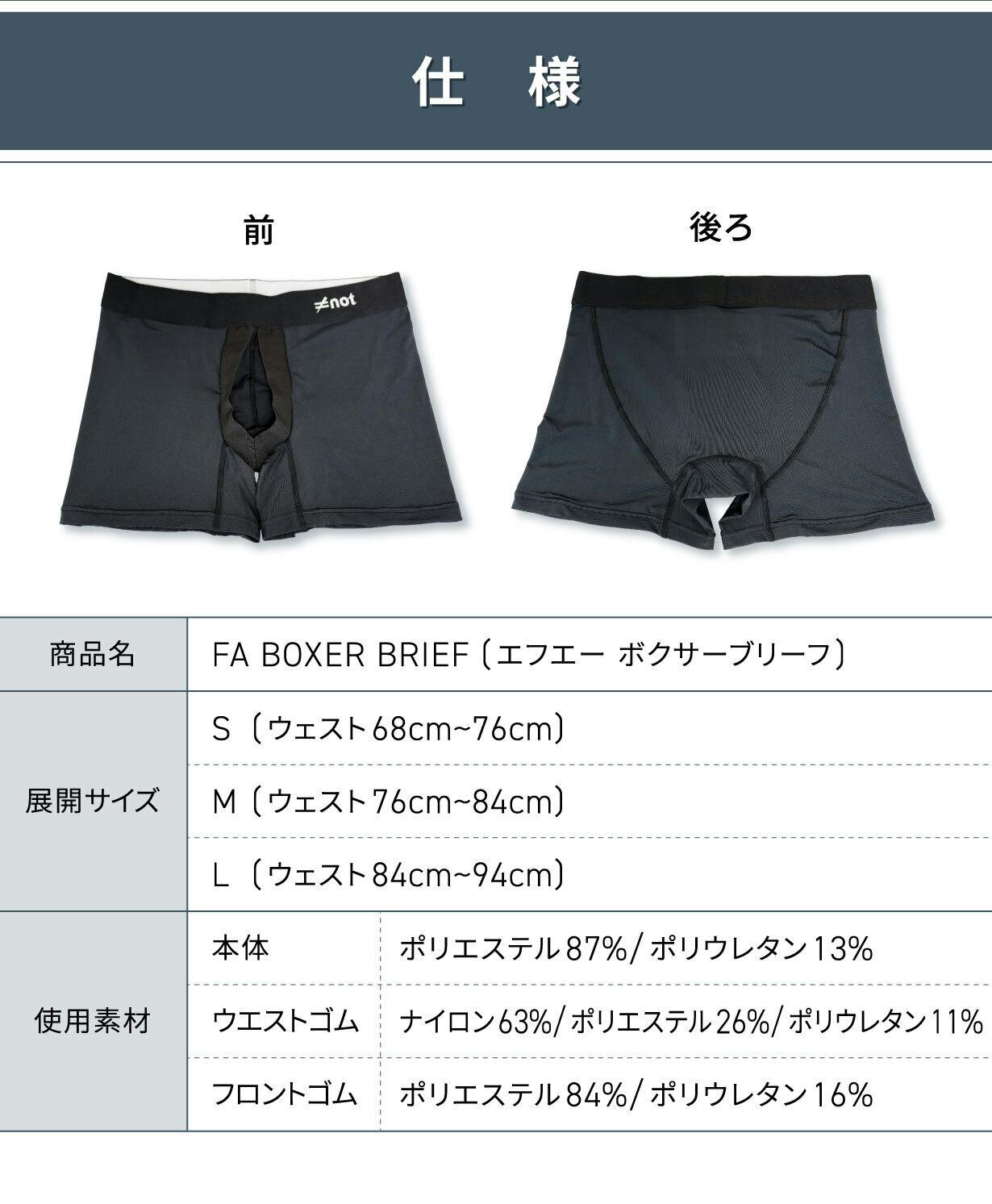 「FA BOXER BRIEF」は男性器を入れる袋を立体的に縫製しています。さらに前方に配置されたゴムで男性器を支えます。
