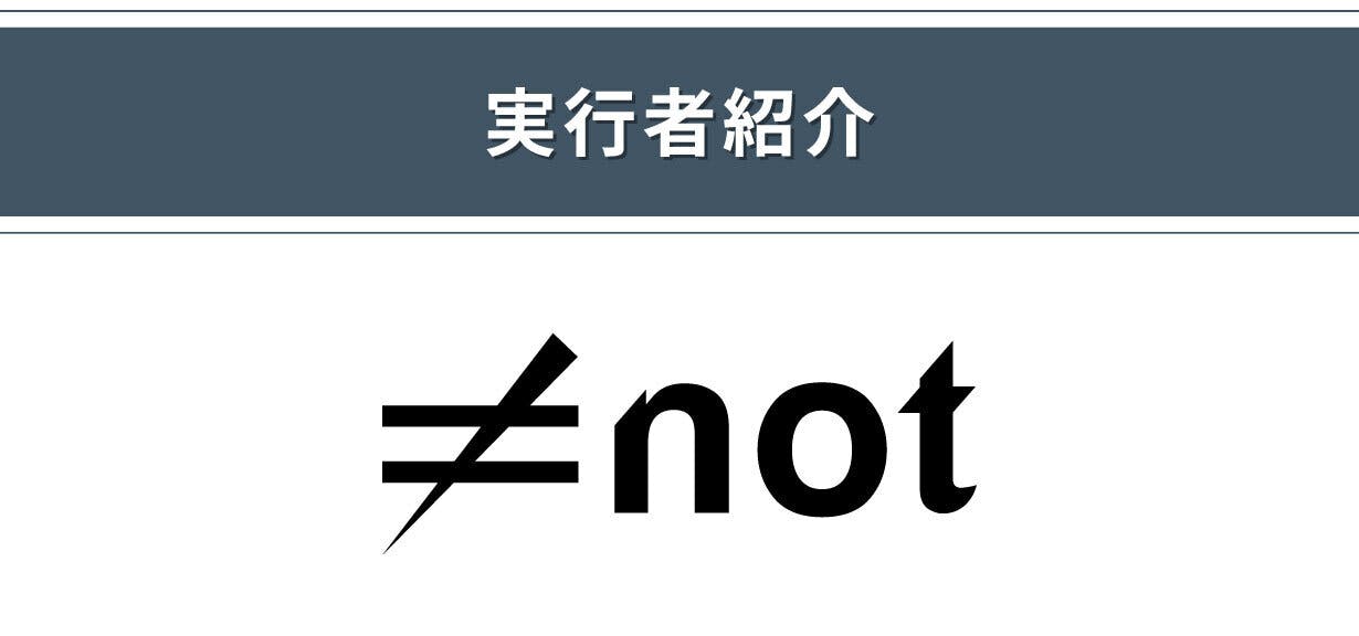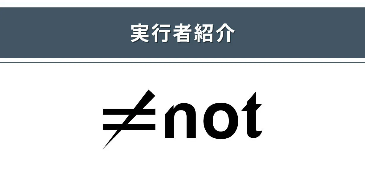 not合同会社のロゴには、「not」と「≠」(ノットイコール)を組み合わせており、「一般的な商品とは一線を画すもの」という意味合いが込められています。