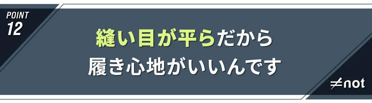 フラットシーマ縫製と呼ばれる平らで段差がない仕上がりになっています。ベビー用品によく使われる技術でとにかく履き心地がいいんです。