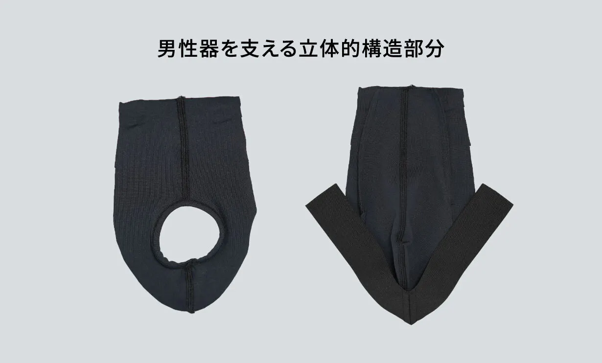 ●本品の前開き(お小水用の隙間のこと)は左右両開きです。※男性器を固定し、運動機能向上を目的とした本品の特性上、前開き部分はタイトな設計になっています。着用したままお小水をするのが難しい場合は、前閉じパンツと同様に脱いでいただきお小水後に再度着用してください。