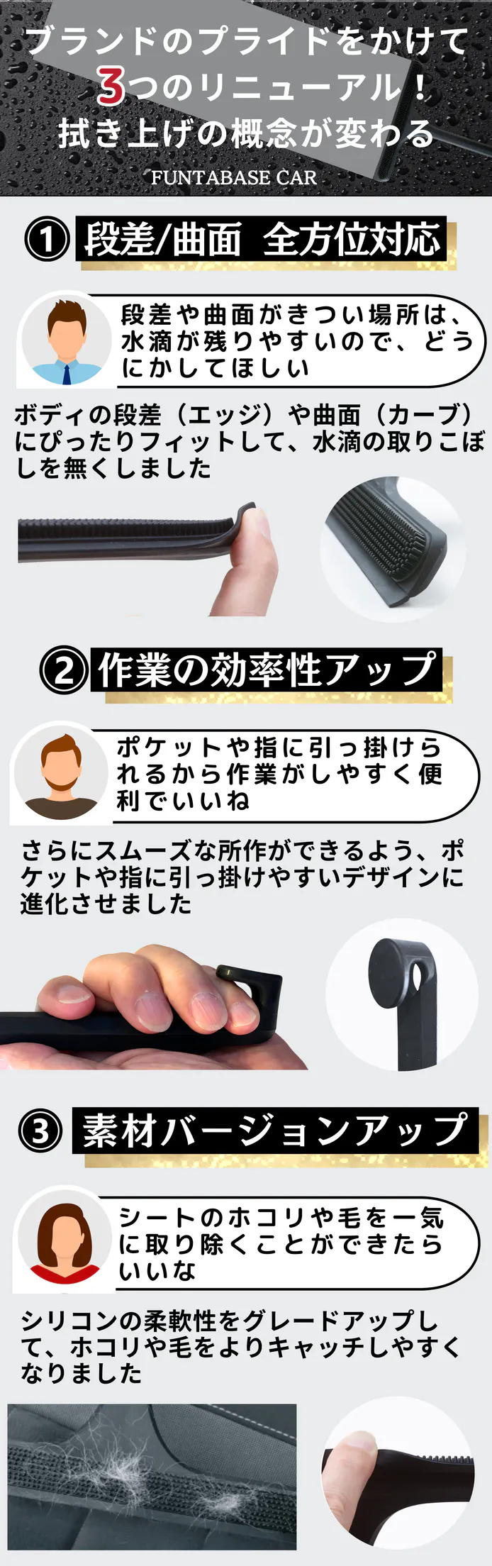 洗車シリーズ累計2600万円超の大ヒットを記録更新中!初回大ブレイクした、あのカースイーパーが、さらに『ボディの段差や曲面に残りがちな水滴除去にもこだわった洗車用スイーパー』に進化して登場!!
