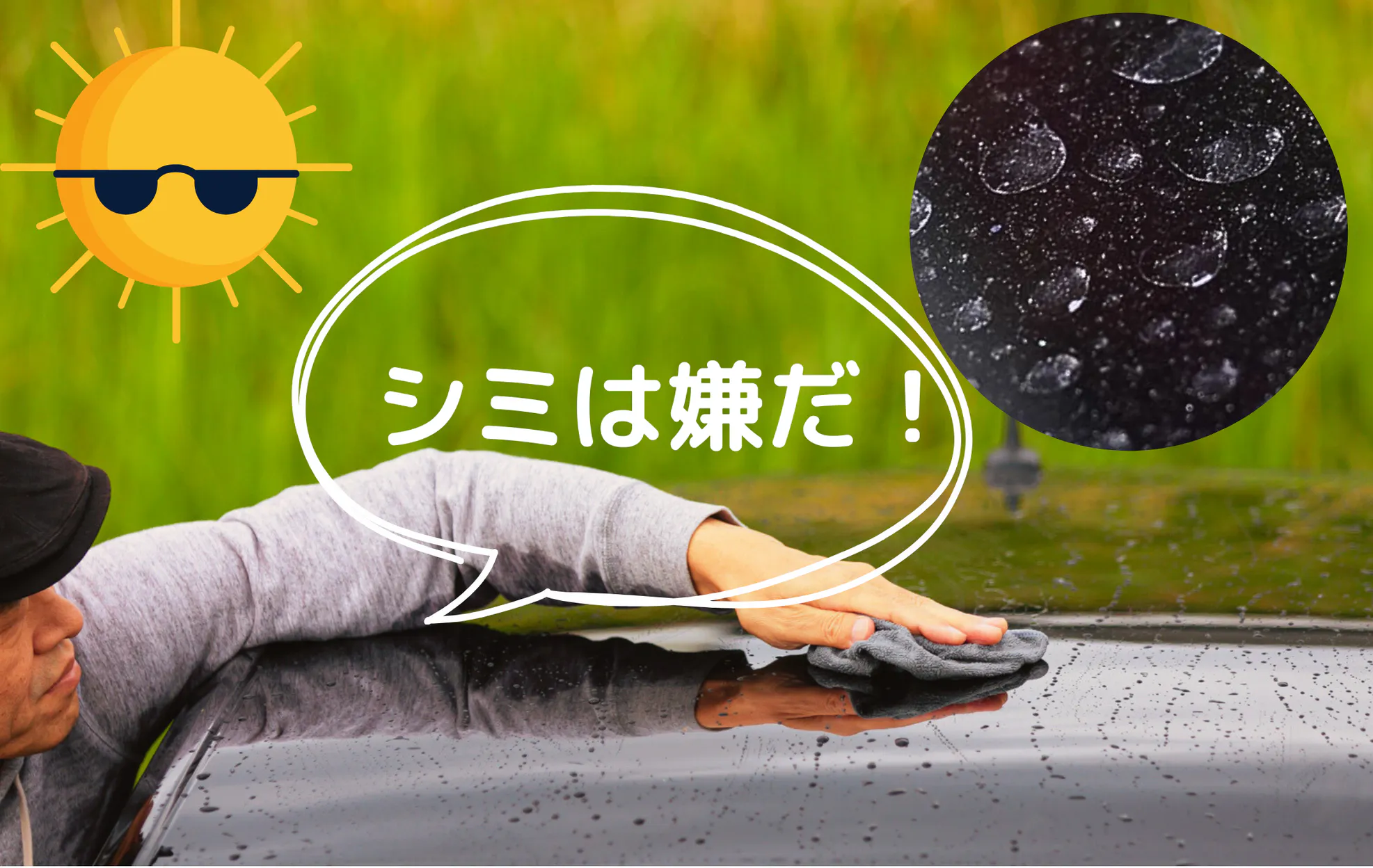 とくに夏の洗車は水滴の乾きがすごく早いので、手早く拭き取らないと、シミやウォータースポットを作ってしまうケースもあります。