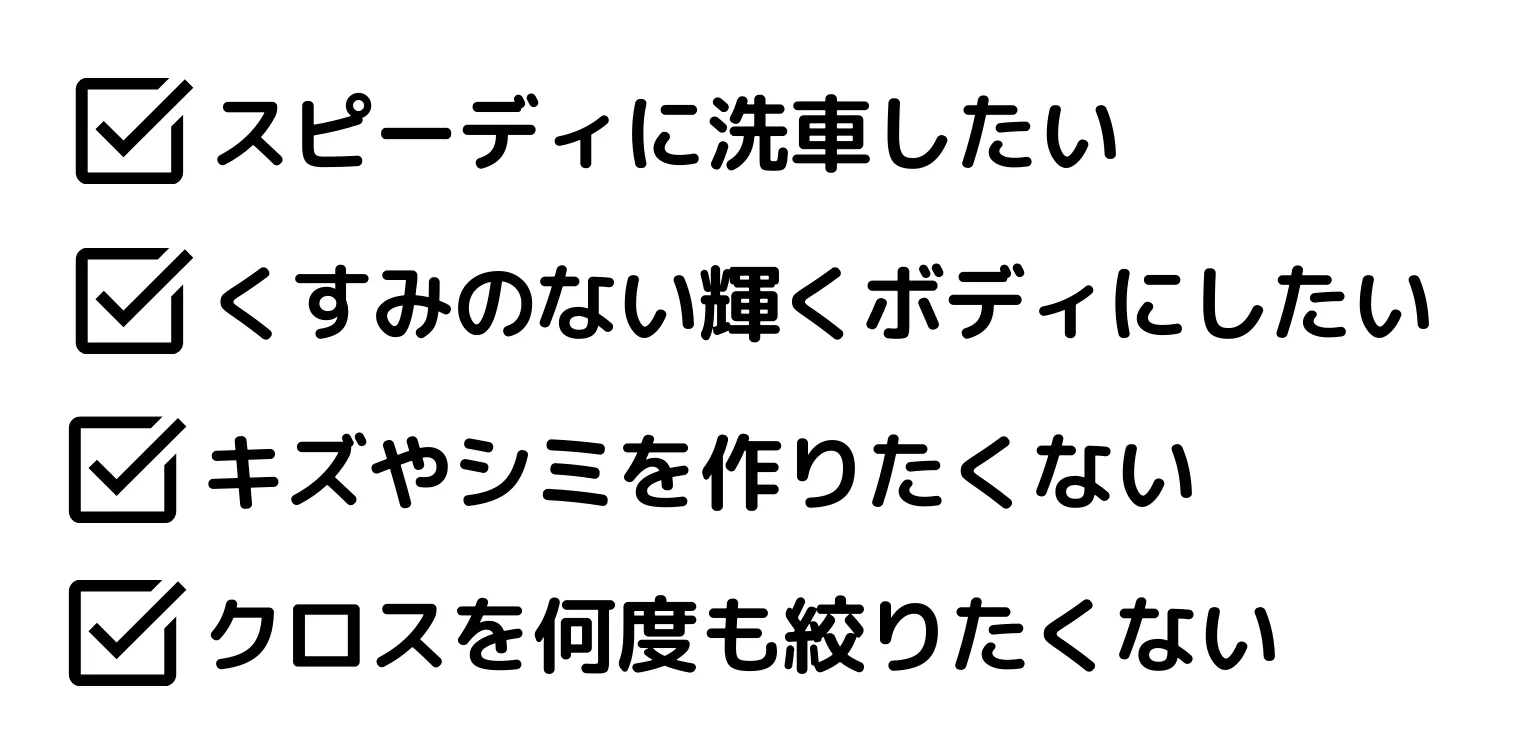 洗車は時間も労力もお金もかかりますので、できるだけ時短で簡単に美しい愛車にしたいですよね。