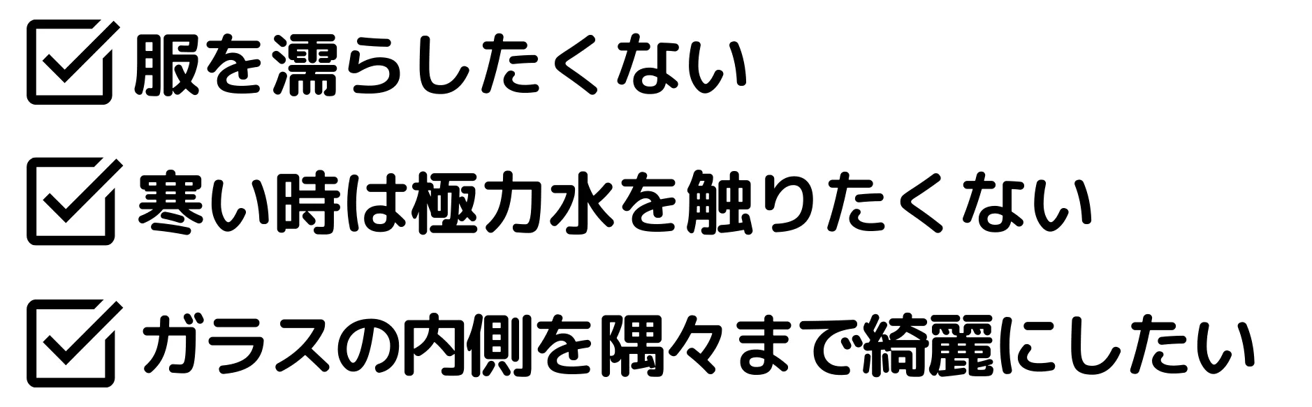 手が届きにくい場所は、油断すると服が濡れてしまう