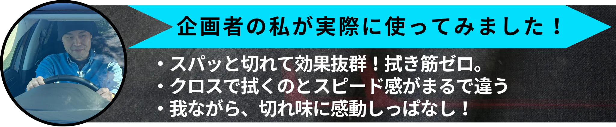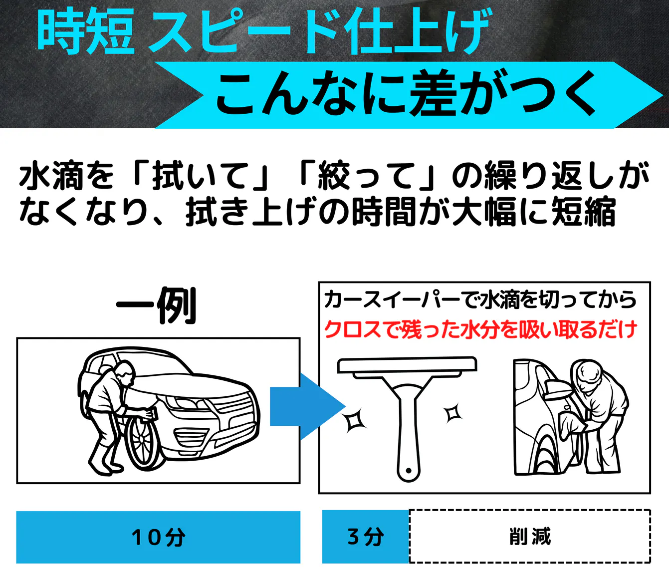 そんな時はカースイーパーの出番です。拭きムラなしでくっきりしたボディに仕上がります。