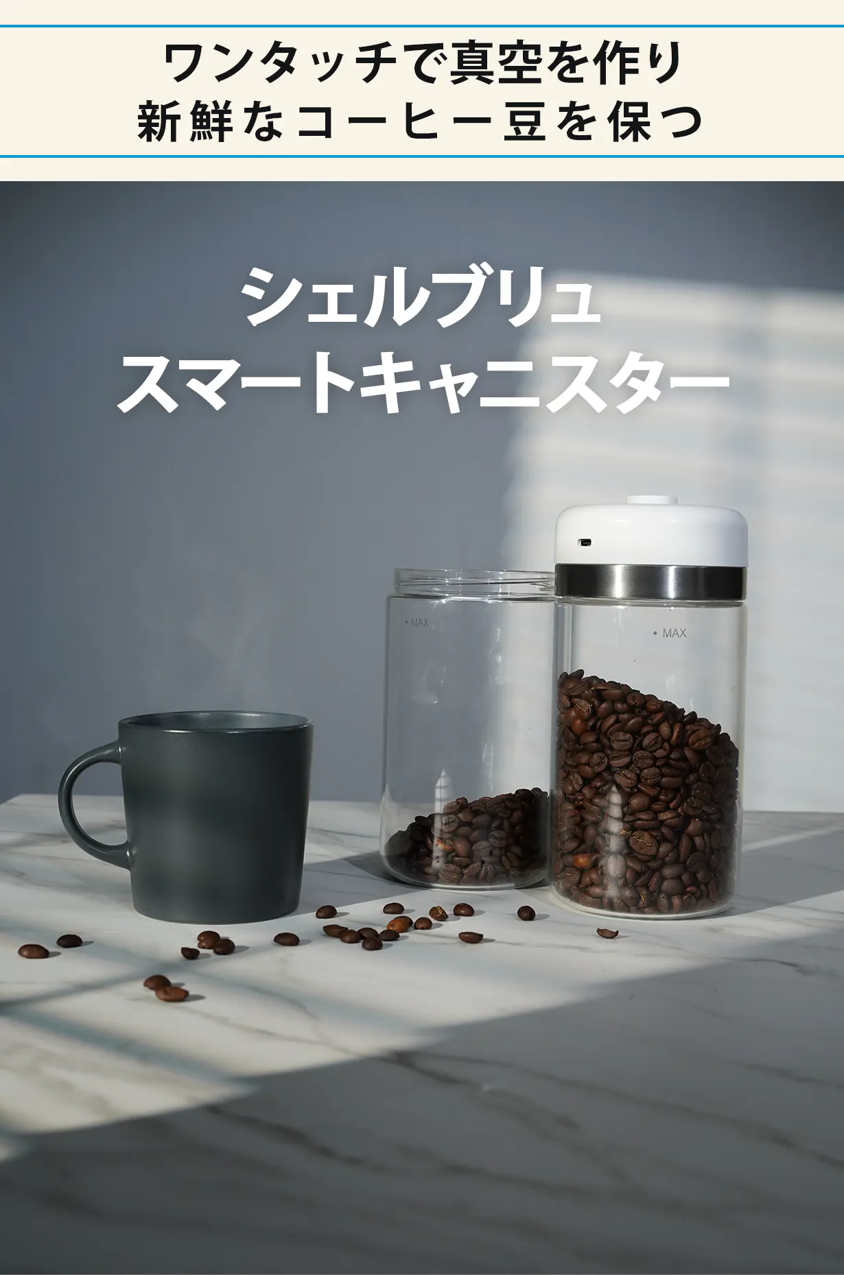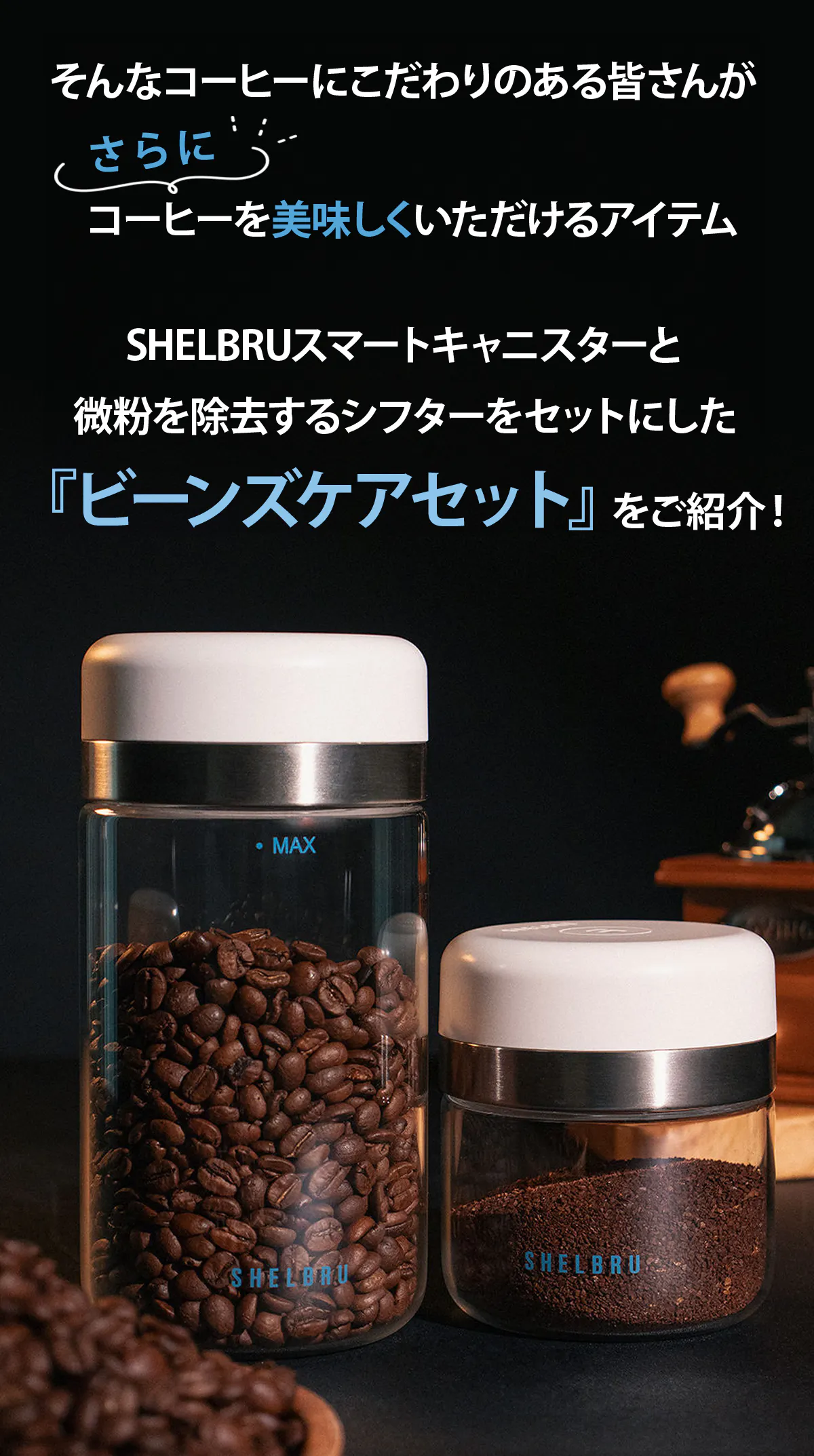 シェルブリュのスマートキャニスターは最も快適にコーヒー豆を保管します。皆様のコーヒーとの生活がより楽しくなるよう、私たちは製品を絶えず企画し、開発しています。より多様なコーヒー抽出ツール、グラインダーなど様々な製品をこれからも製作する予定です。