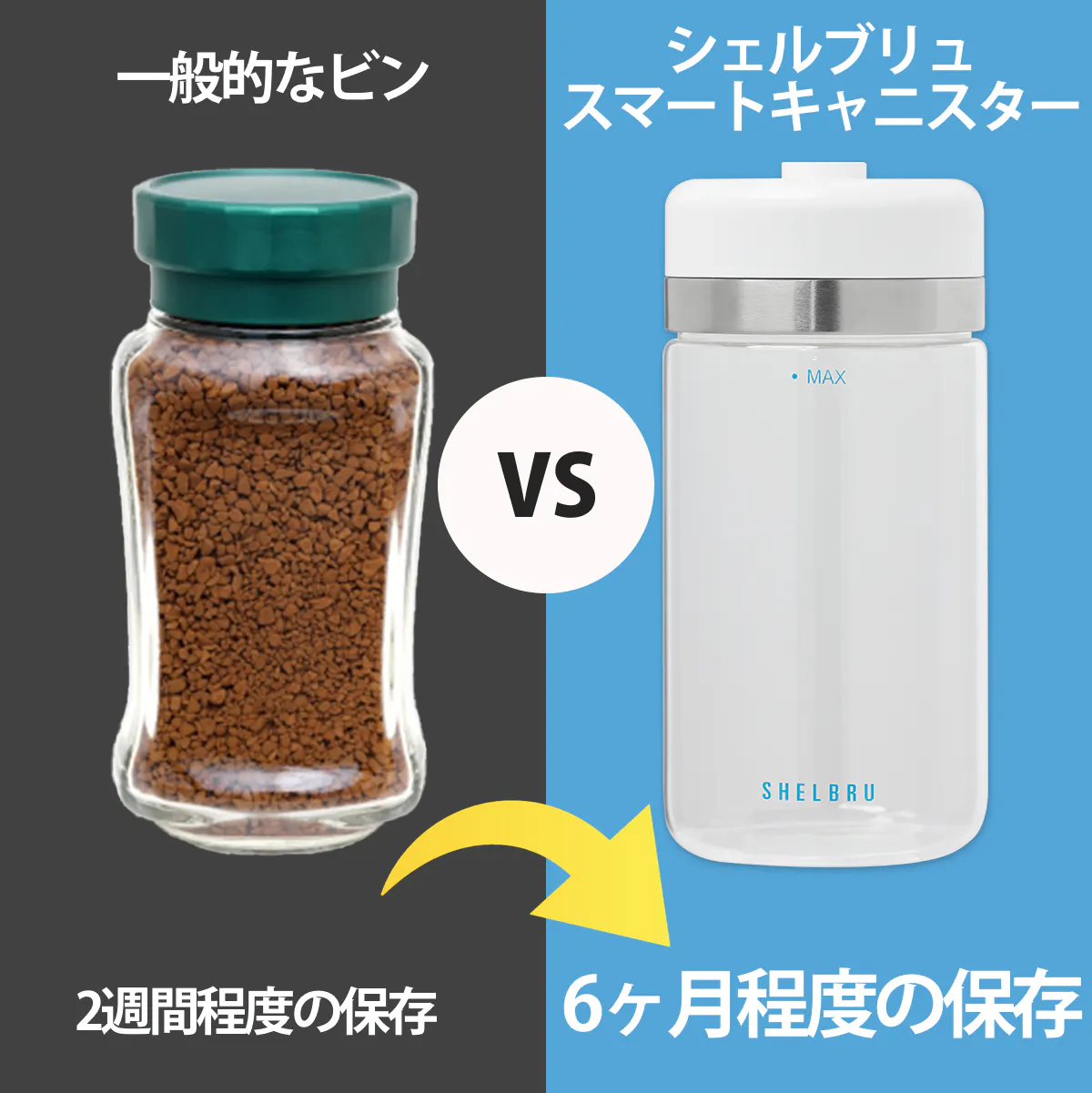 『スマートキャニスター』なら、蓋を開けなければ6ヶ月程度の保存が可能。