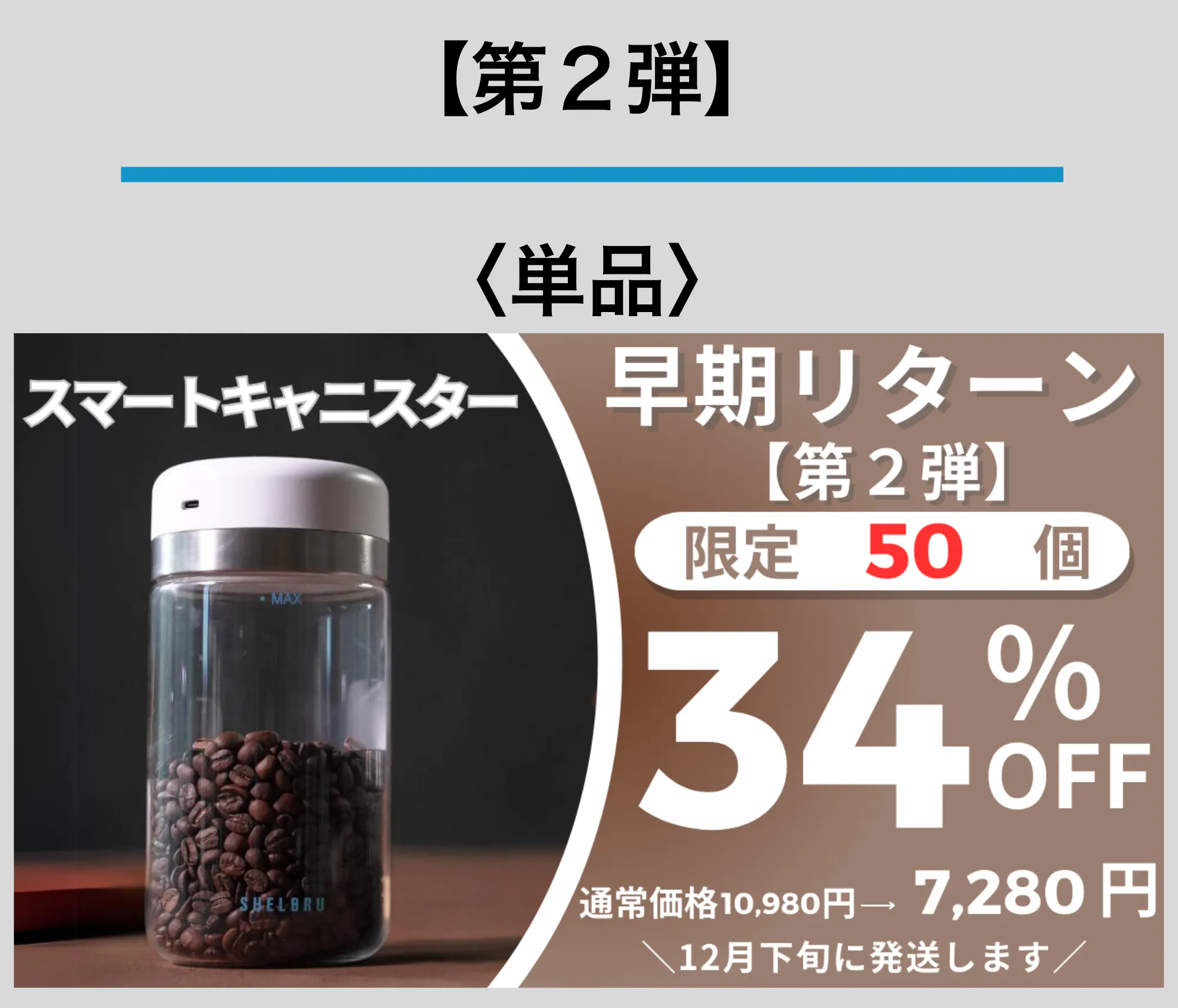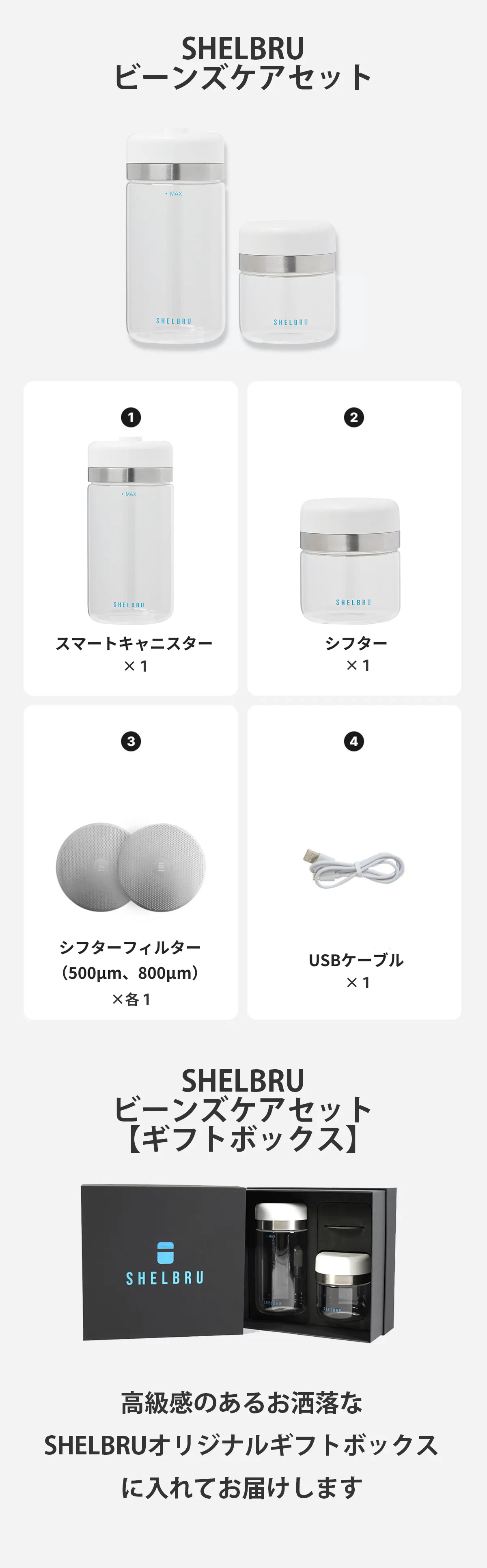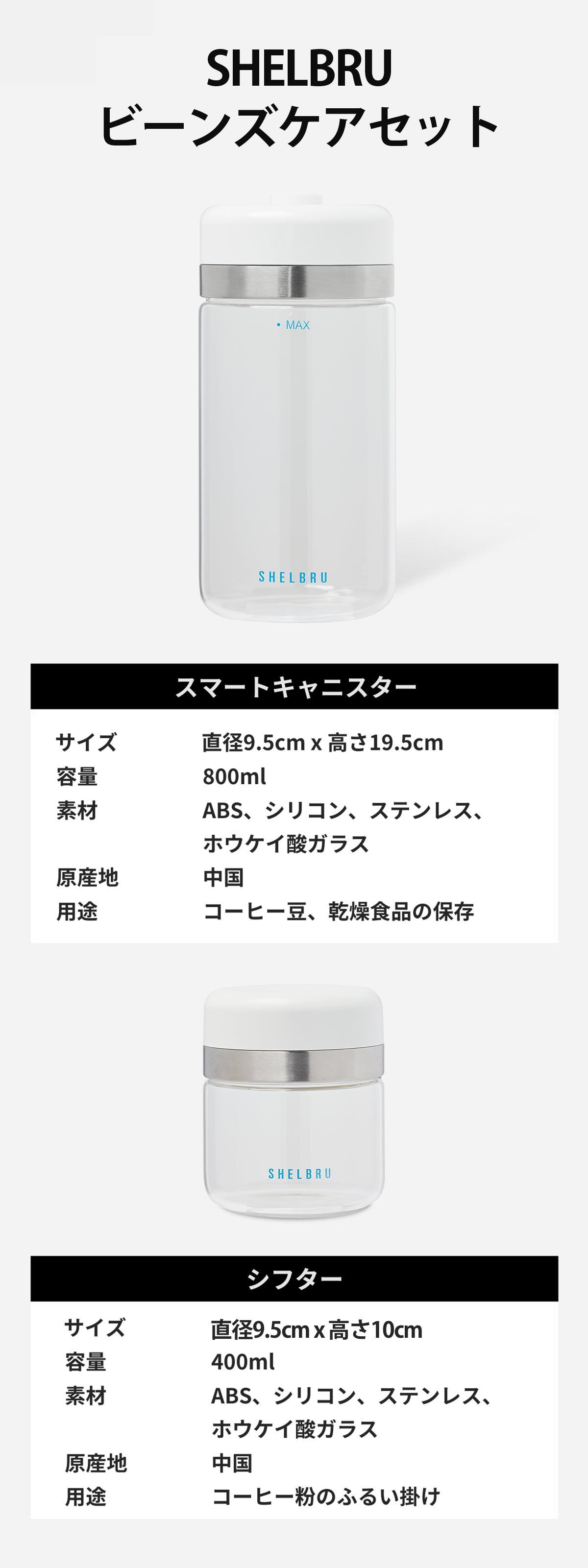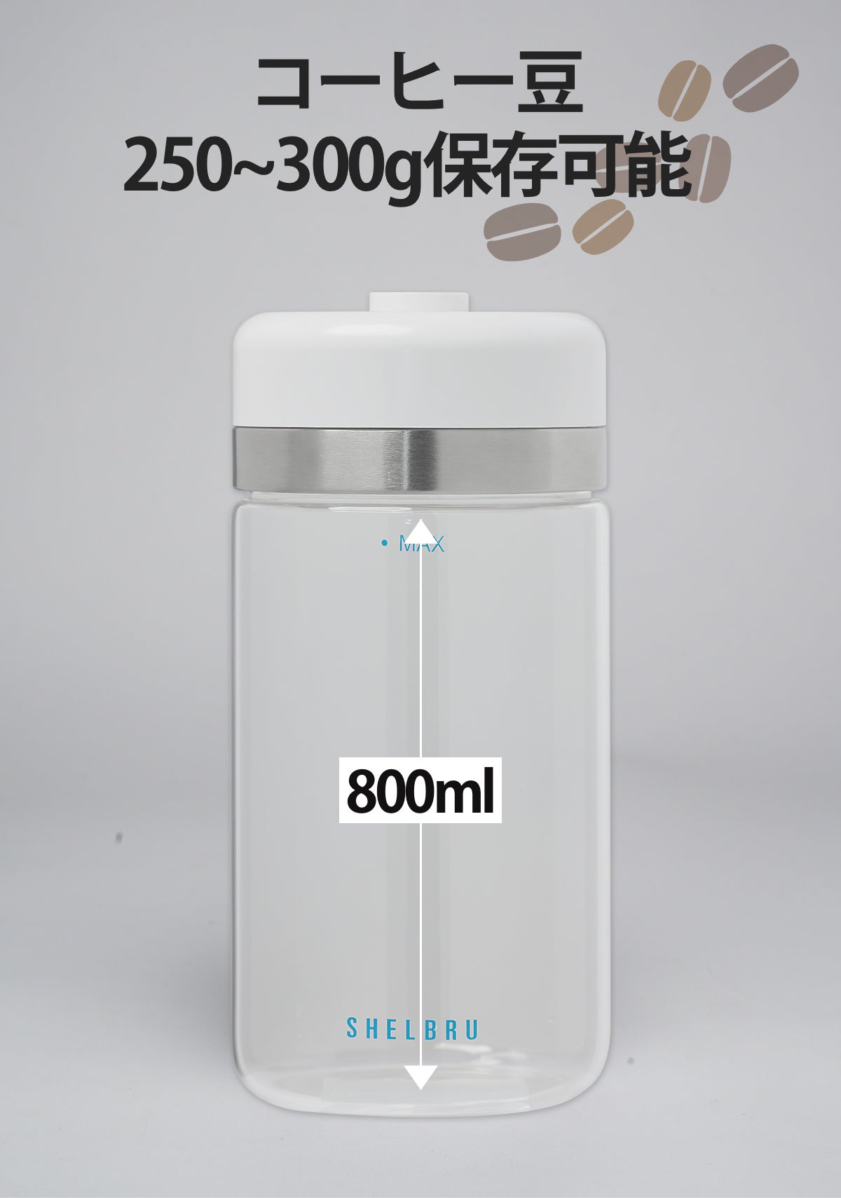 ※製品のガラス部分「・MAX」の文字がページ上ではシルバーとなっていますが、リターンは水色のものになります。また、キャニスターの下部に「SHELBRU」のロゴが入りますのでご了承ください。