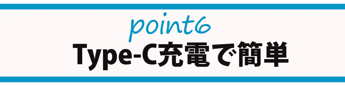 Type-Cケーブルで簡単に充電ができます。