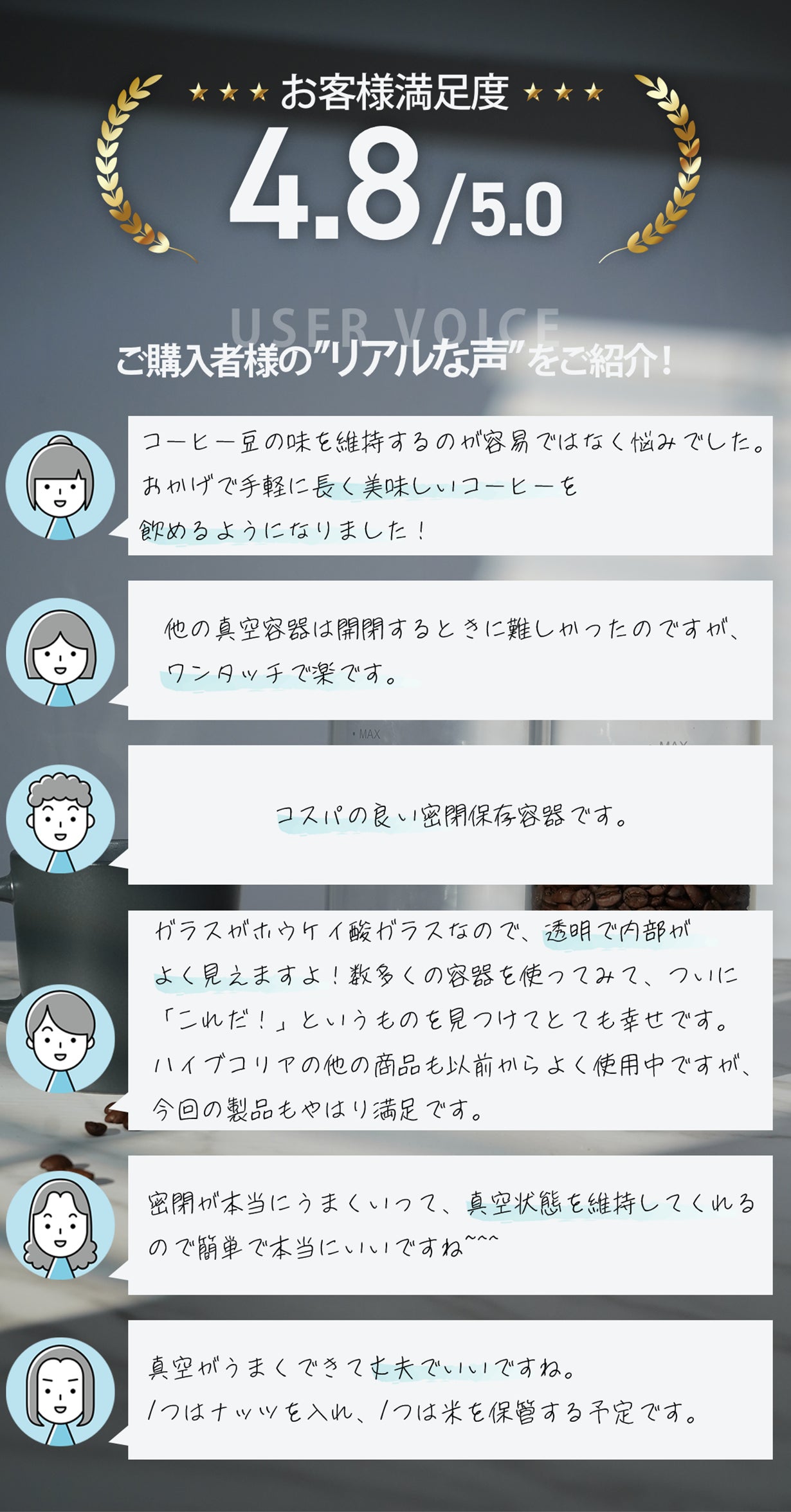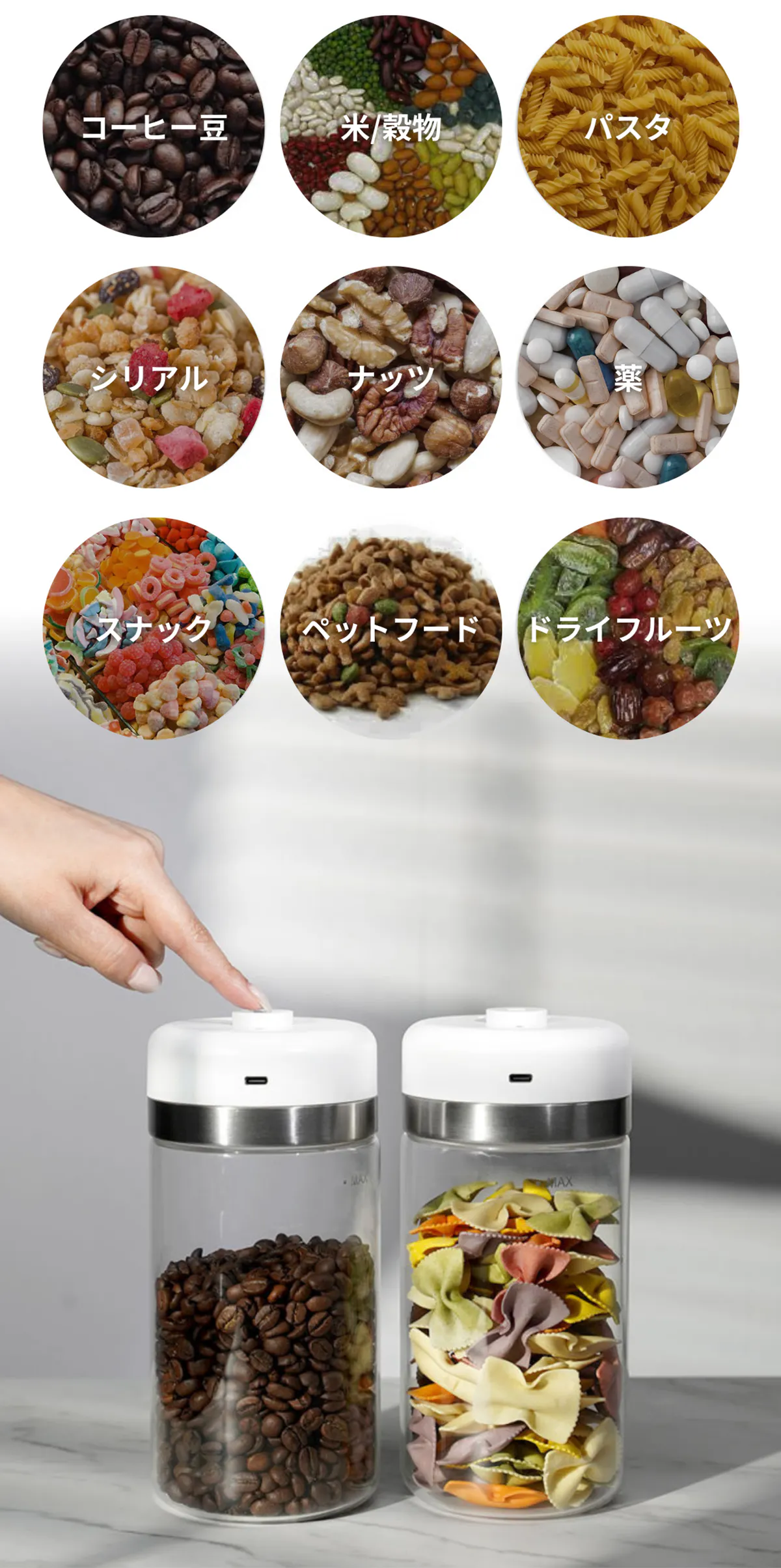 お気に入りのコーヒー豆やシリアルなど、毎日おいしくお楽しみください!