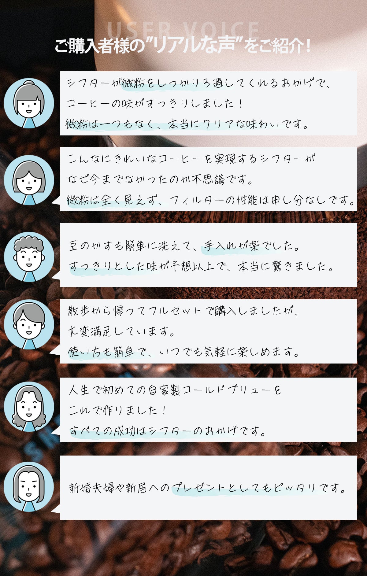 800μmのフィルターは、粗挽きの豆に適しており、フレンチプレスやコールドブリューなどの淹れ方で豊かな風味を引き出します。