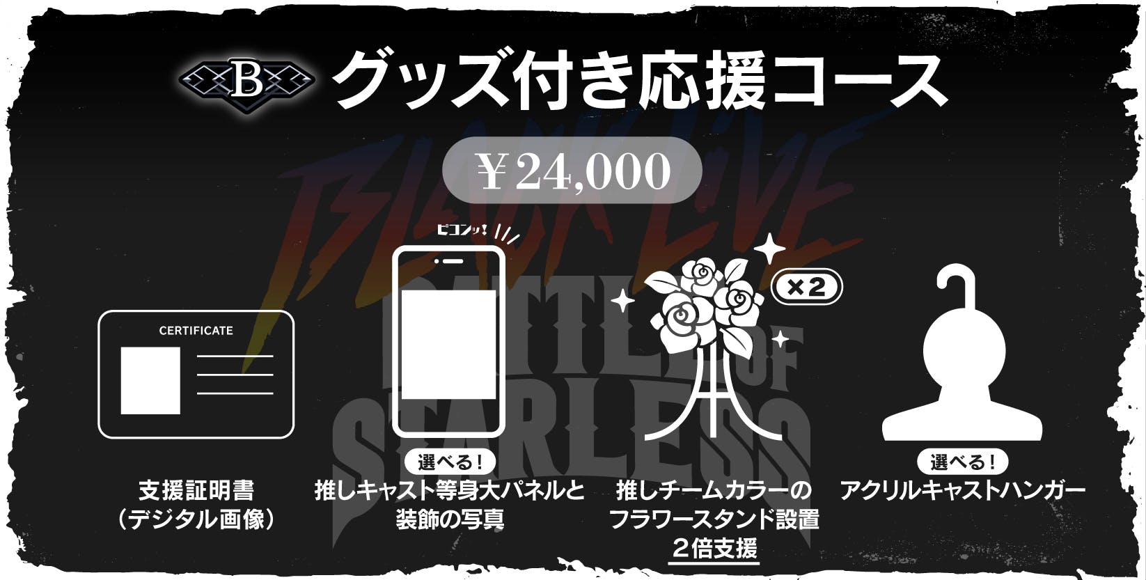 A:目標金額に達しなかった場合も、予定通り「BLACKLIVE-Battle of Starless-」公演でのフォトスポットの製作は行われます。