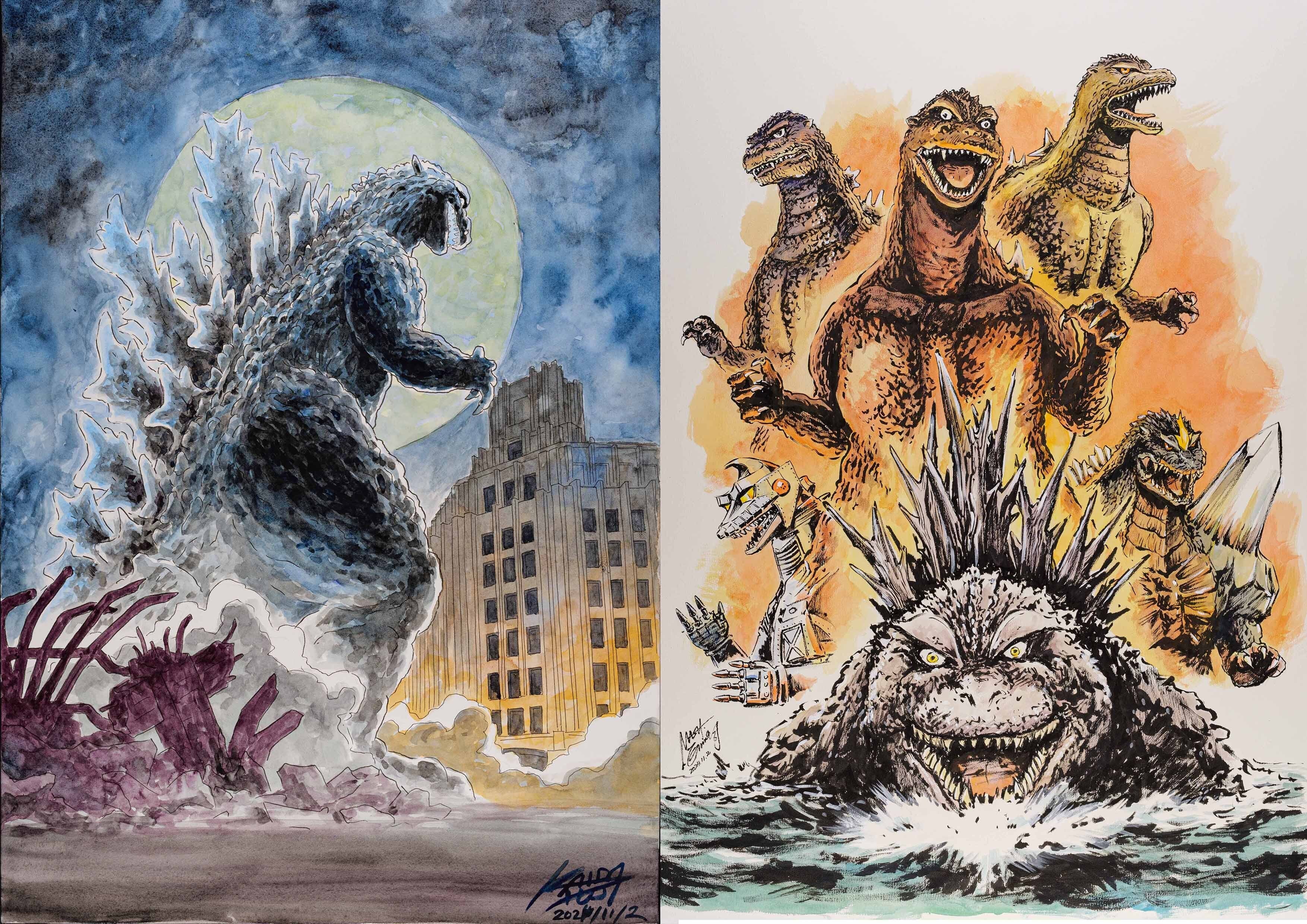 『ゴジラ-1.0』までの全ての“ゴジラシリーズ”を描いてきたイラストレーター・漫画家の二人の作品でゴジラ70周年を記念した展示となります。