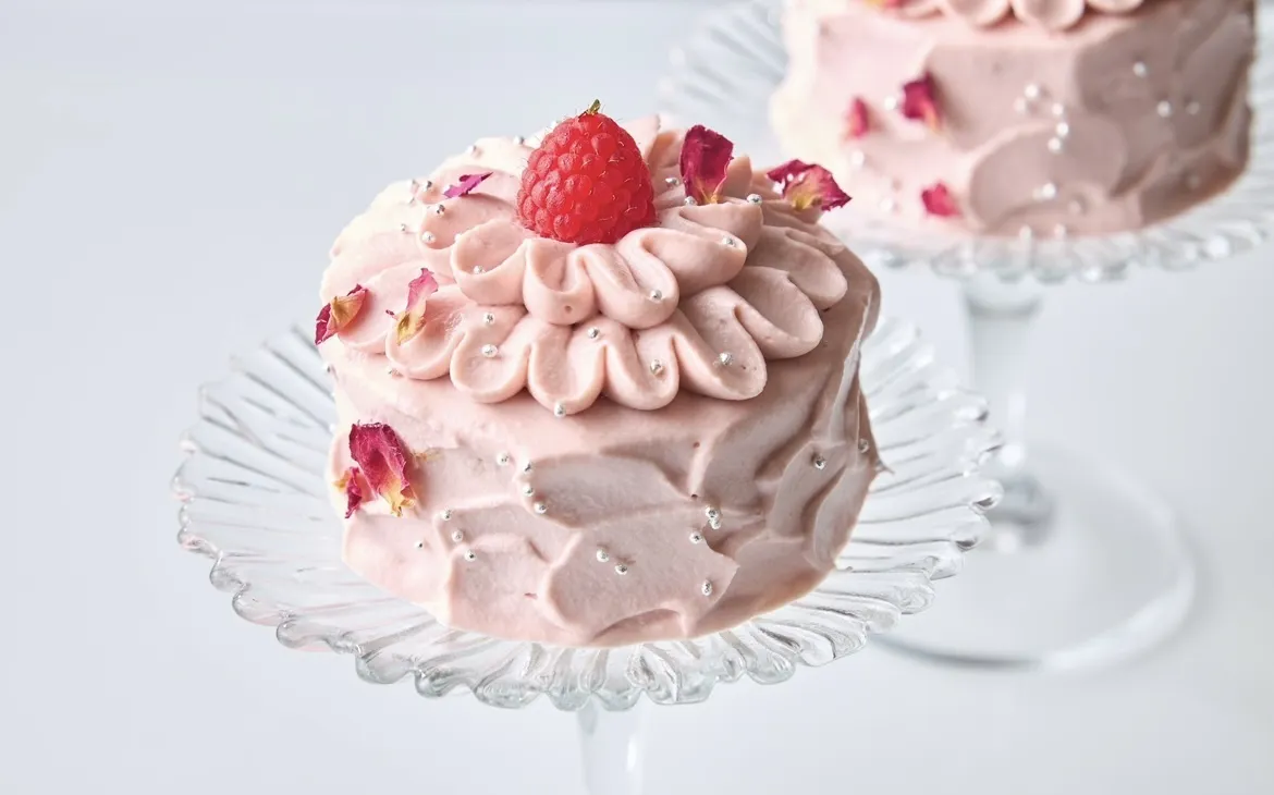 このルビーチョコレートを、濃厚なジャージー生クリームと合わせ、他にはない贅沢な味わいを実現しました。また、定番商品の「薔薇と苺のショートケーキ」のデコレーションを受け継いだデザインで、トップにはフランボワーズを飾り、見た目も可愛らしく仕上げています。