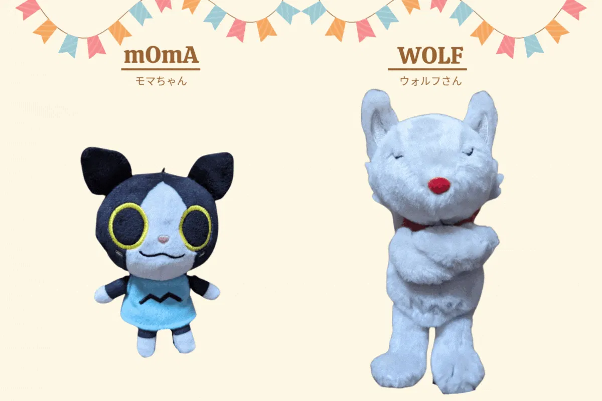 「モマちゃん&ウォルフぬいぐるみ制作プロジェクト」記念の描きおろしイラストが完成しました!