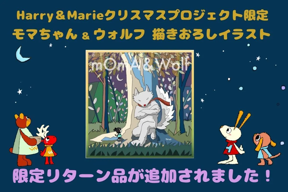 2024/12/11 21:00森の賢者ウォルフと、それに憧れるモマちゃん。知恵の木の下、目を閉じて静かに座るウォルフを見つめるモマちゃんの姿が描かれた、今回のプロジェクトのためだけの限定イラスト。このイラストは、見る人それぞれが自由に物語を想像できる特別な一枚です。ウォルフは何を想い、モマちゃんは何を感じているのか――。あなたも心の中で続きを描いてみませんか?この特別なイラストを使用した、Harry&Marieの限定グッズが、クリスマスプロジェクト限定で登場!あなたの日常に寄り添い、特別な時間を届けるラインナップをご紹介します。☆ラインナップ紹介☆ポーチ3点セット(2,300円) モマちゃんとウォルフといつでも一緒におでかけ♪スマホ&メガネ拭き 2枚セット(2,500円) 日常使いが楽しくなるアイテム!ノート5冊セット(2,800円) 勉強やお絵描きがもっと楽しく!ランチョンマット(2,600円) 特別なランチタイムを演出します。ロングTシャツ(4,000円) Harry&Marieの世界を身にまとってお出かけを。ふかふかフロアマット(5,200円) お部屋をあたたかく彩る、触り心地抜群のアイテム。BIGタペストリー(23,000円) お部屋の主役になる、大迫力の一枚!これらの限定グッズは、今回のプロジェクトのためだけに制作されたものです。作者が感謝の気持ちを込めて描いたイラストが施されたクリスマスプロジェクト限定グッズが、ご支援くださった皆さまにとって特別な記念となれば嬉しく思います。販売は12月31日まで!ぜひチェックしてください☆この冬、Harry&Marieの世界をあなたの日常に。モマちゃんとウォルフが織りなす心温まる世界を、みなさまと一緒に育てていけることを楽しみにしています。詳細はコチラからご覧いただけます↓[プロジェクトページはこちら]Harry&Marieスタッフ もっと見る
