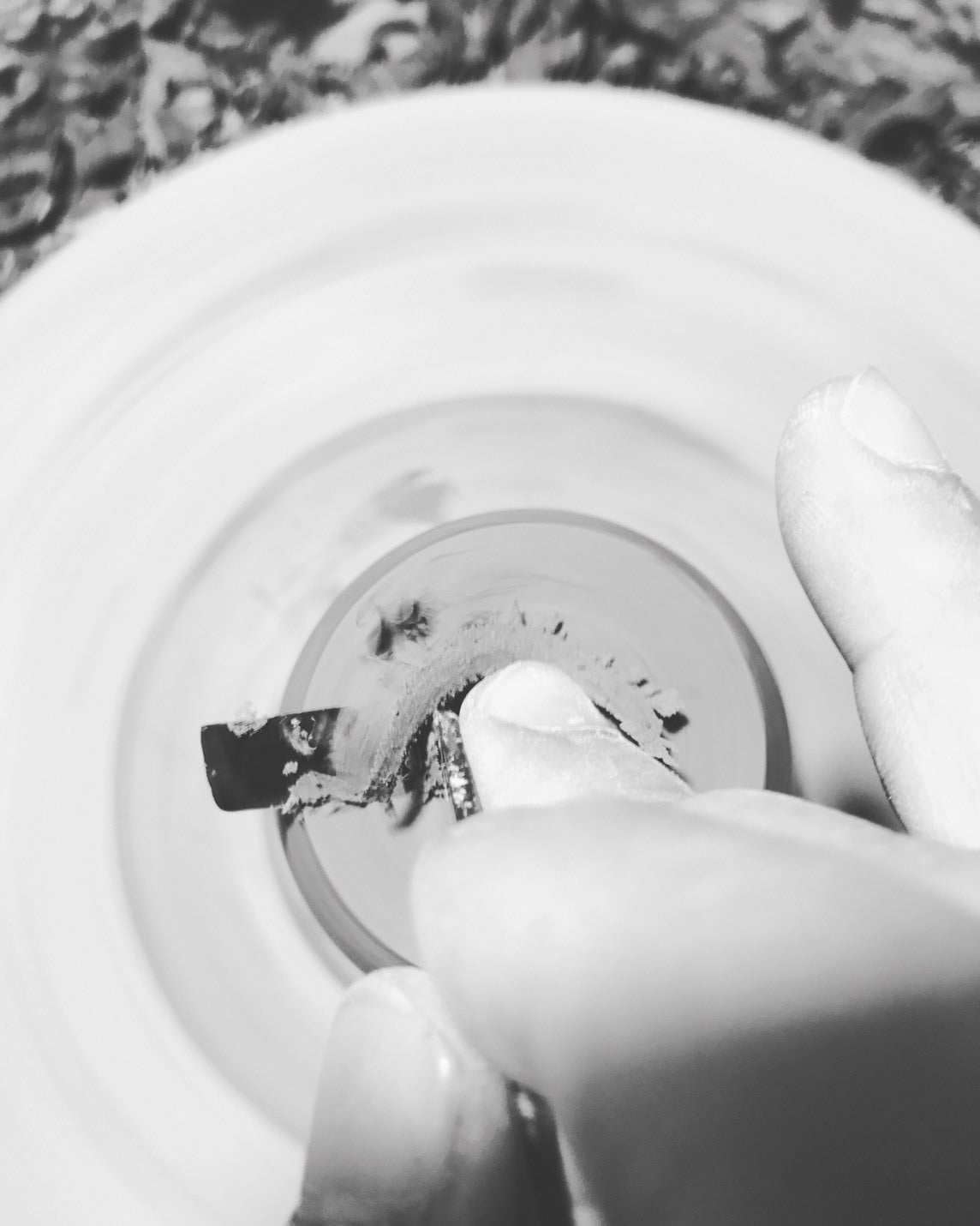 土と水と、廃棄コーヒー豆で作った灰に、鉱物を反応させてその酸化反応で様々な色が出せるそうです。