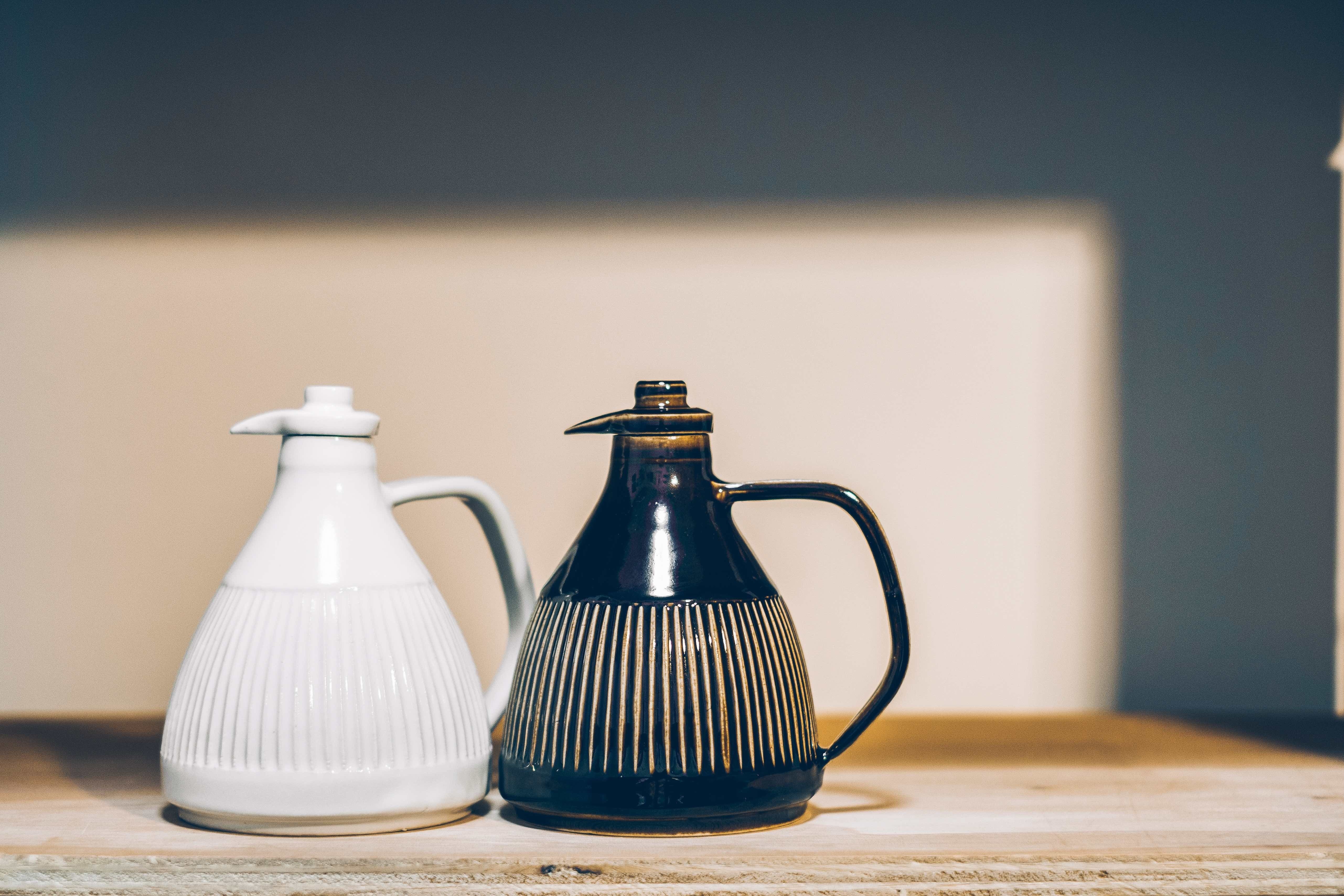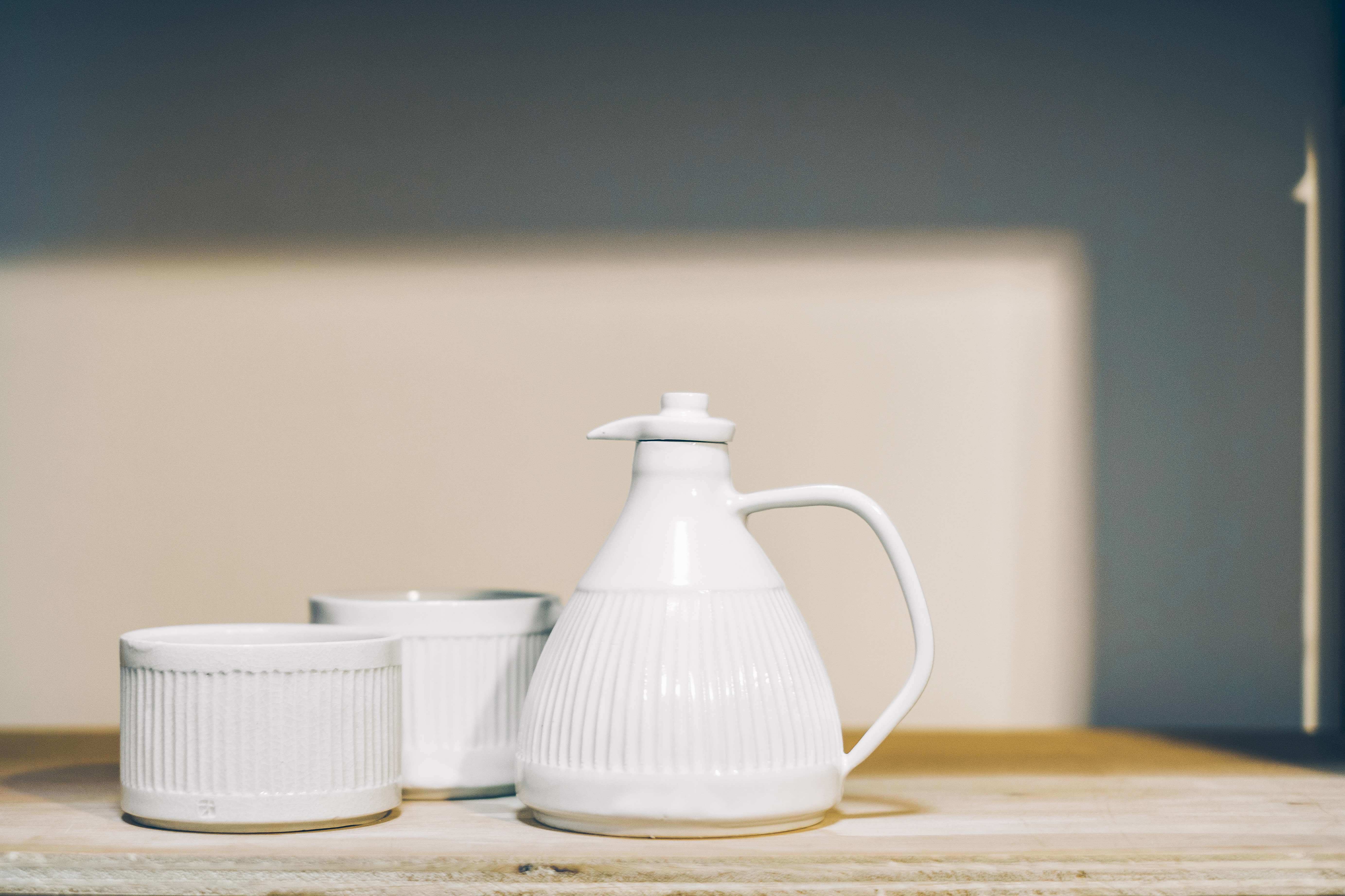 松葉さんと大江さんの双方の想いがカタチになった、素敵なコーヒーカップとドリップポット。