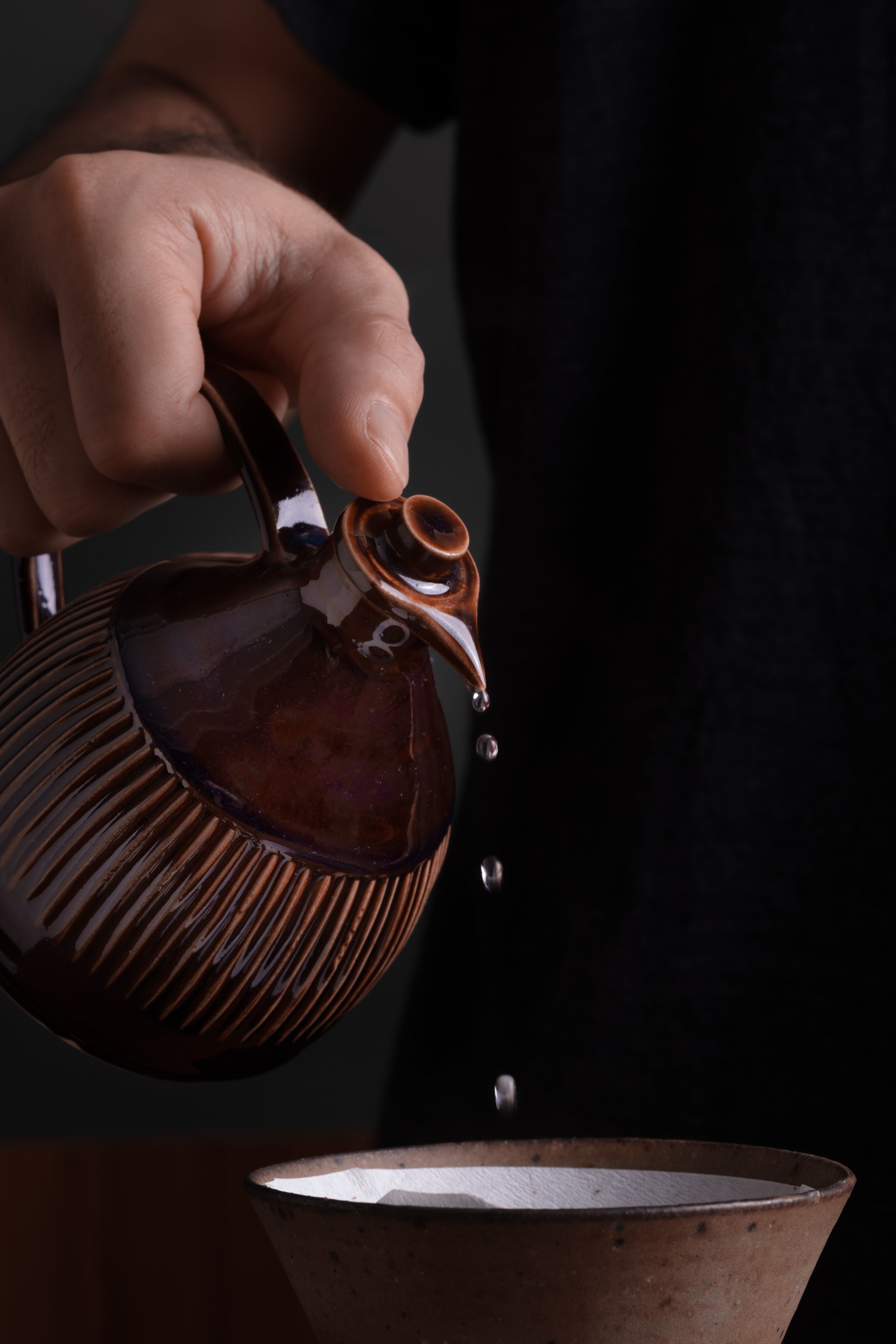 また、通常のポットだとドリップ時、放物線状に出る湯が粉の面を荒らしてしまう事で湯溜まりや過抽出に繋がりやすいので、直線に落ちる湯の線が得られる作りにしたかったこと。