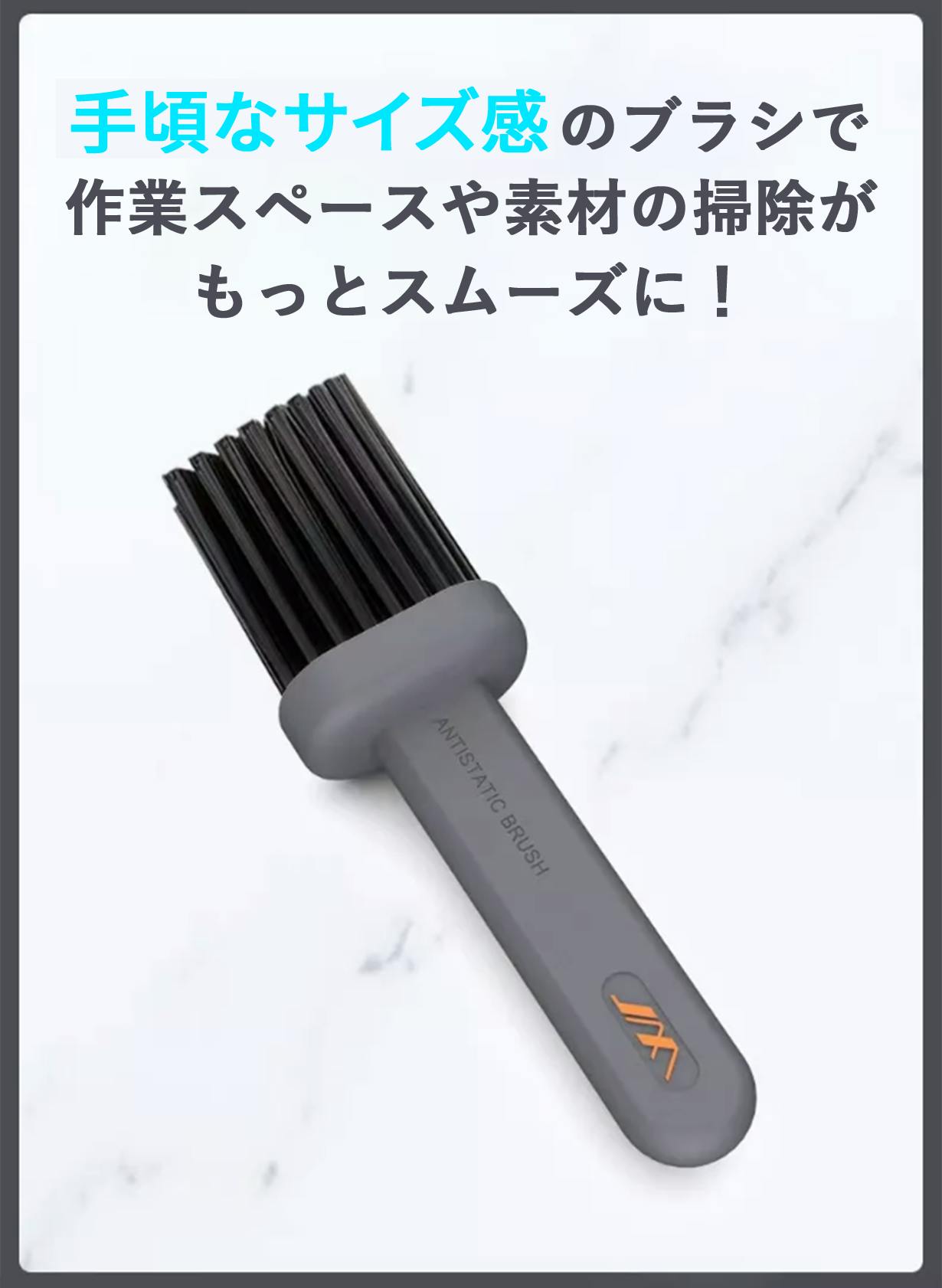 掃除用のブラシ付きで、作業後はもちろん、作業中も大活躍!