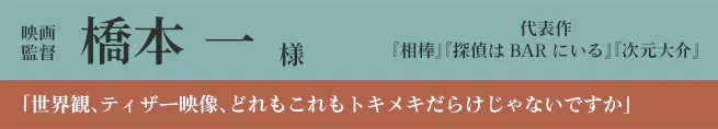 こうした思いのもと本作の監督をお願いしたのは、弊社が昨年一年間『王様戦隊キングオージャー』のバーチャルプロダクション撮影をご一緒させていただき、その才能と映像にかける熱意を目の当たりにして将来日本を代表する映像作家になると確信するに至った上堀内佳寿也監督です。