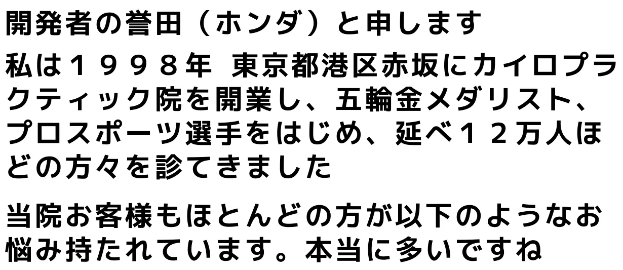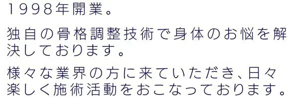 クライアント:政財界のVIP、各界著名人、プロスポーツ選手(金メダリスト、ボクシング世界チャンピオン、各種競技)をはじめのべ 12万人 を施術