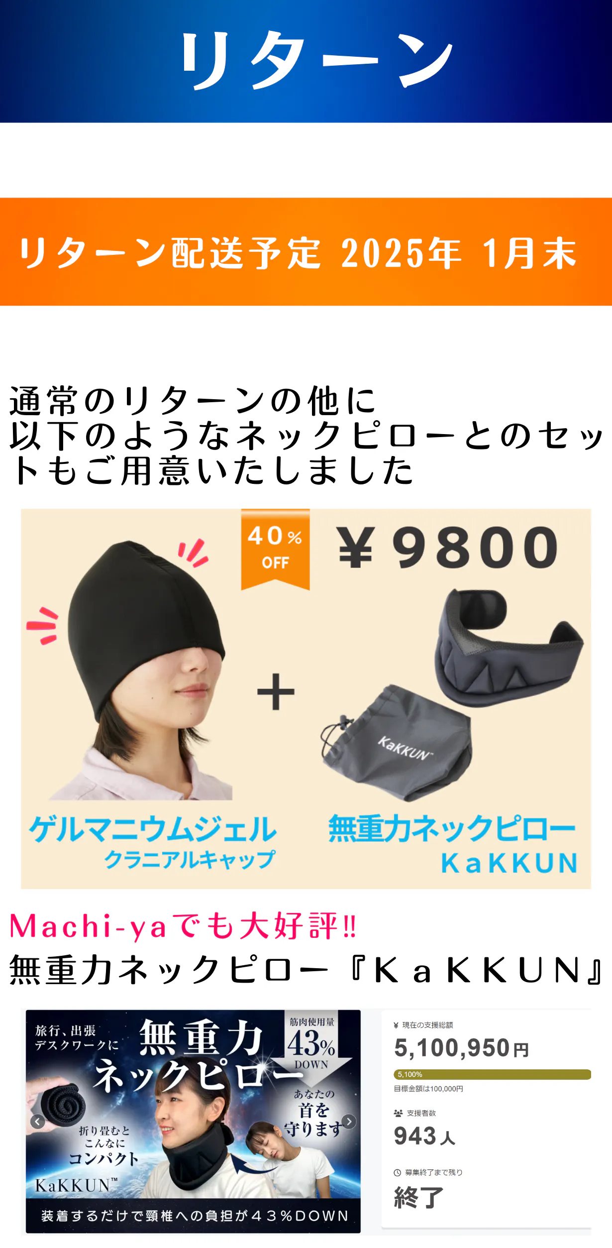 【残り1日】無重力ネックピロー『KaKKUN』プロジェクトが残り1日となりました!