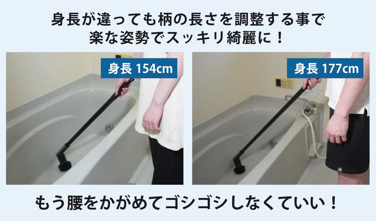 前かがみになってお風呂の壁や浴槽のふちに手をついて掃除をするなど、ケガをするリスクの高い掃除とはもう無縁です。