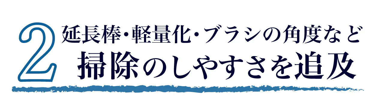 形にも非常にこだわっており、握りやすいハンドルと掃除しやすいブラシ部分の角度を実装し、更に軽量化にも成功しております。