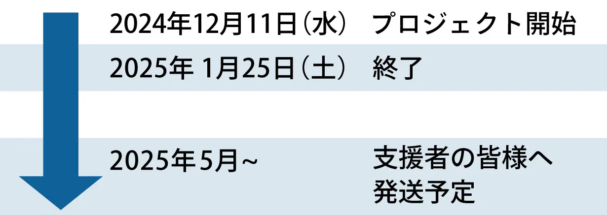 ※ご支援の数が想定を上回った場合、製造工程上の都合等により出荷時期が遅れる場合がございます。
