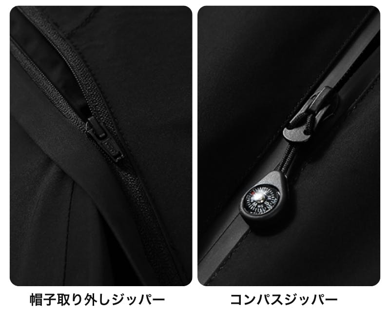 一般的に風速1m/sで体感温度が1℃下がると言われています。断熱性が優れていても、雨風をしのげなければ寒さを感じてしまいます。「3IN1エアジャケット」では、断熱性だけでなく防風性、防水性に優れた素材を使用しています。