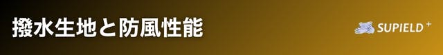 防水透湿性素材を使用し、通気性抜群のため、アクティブに動いても汗をかいてもムシムシしない構造となっています。この外側からは防水仕様、内側からは通気性抜群という両面でのいいとこどりの機能で、服の中が蒸れにくく快適に過ごせるようになっています。