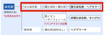 ヘアカラーには多様な種類があり、染まりがよくないカラーシャンプーやトリートメントは化粧品となっており、国からの許可は必要ありません。1回で髪の中からきちんと染まることが認められている「染毛剤」は化粧品ではなく厚生労働省の認可が必要な「医薬部外品」。ウォーターカラーリングはアルカリ性薬剤や過酸化水素を使っていないにもかかわらず、1回で髪の中からきちんと染まると認められ、医薬部外品として認可されました。新しい技術の素晴らしさが日本でも認められました。